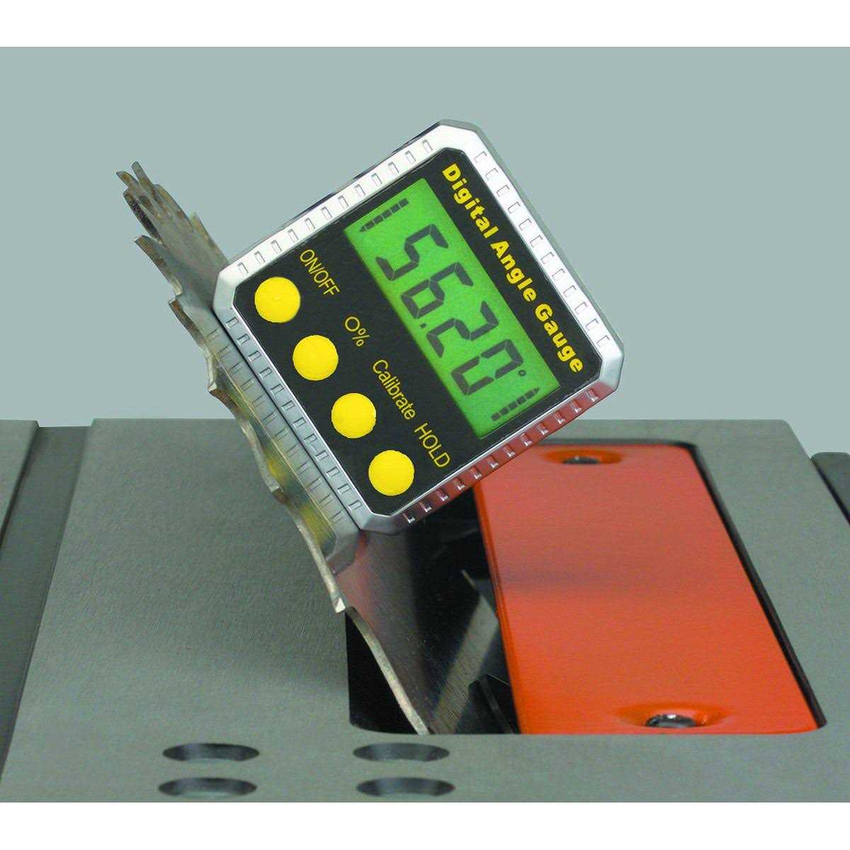 Use this magnetized, digital angle finder for dozens of projects including leveling, alignment and setting table saw blade angles. The angle has a large, easy-to-read digital display for instant accurate readings. Data freeze button keeps the reading on the display as you work. Durable stainless steel construction, with magnetic base. Self-calibrating.
