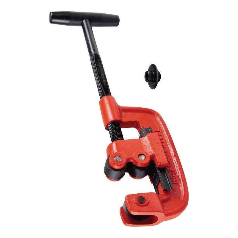 This pipe cutter makes fast, easy cuts in standard pipes. The pipe cutter has a high grade cast malleable steel frame with hardened alloy steel rollers for added durability.