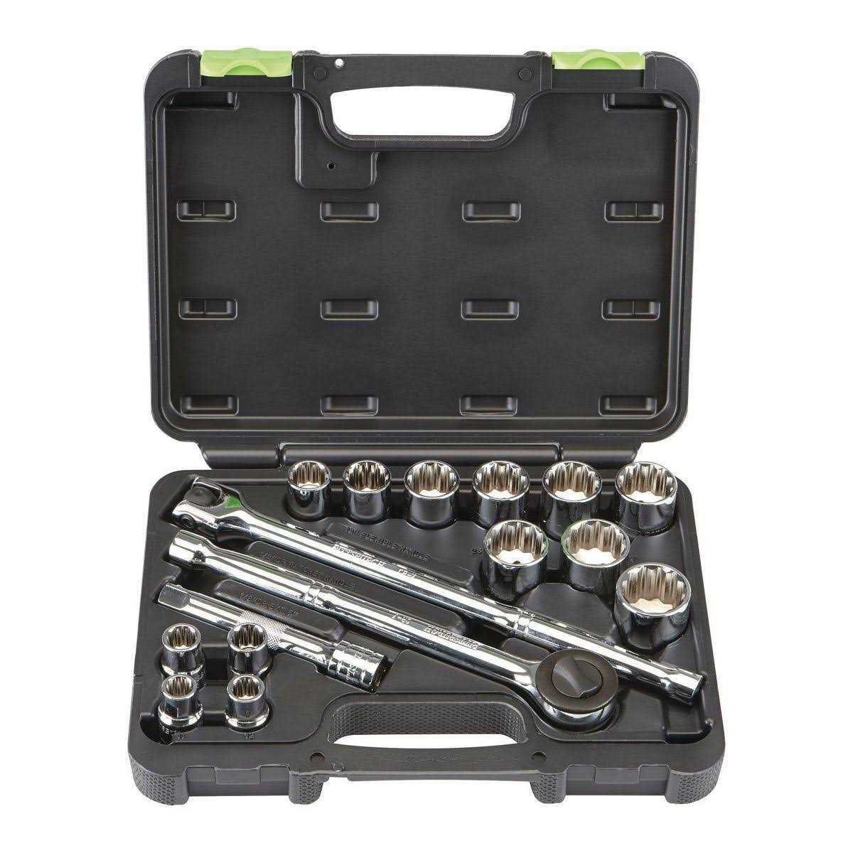 This socket set comes with a ratchet, breaker bar and the most popular sized sockets. Chrome vanadium construction for durability and longevity.