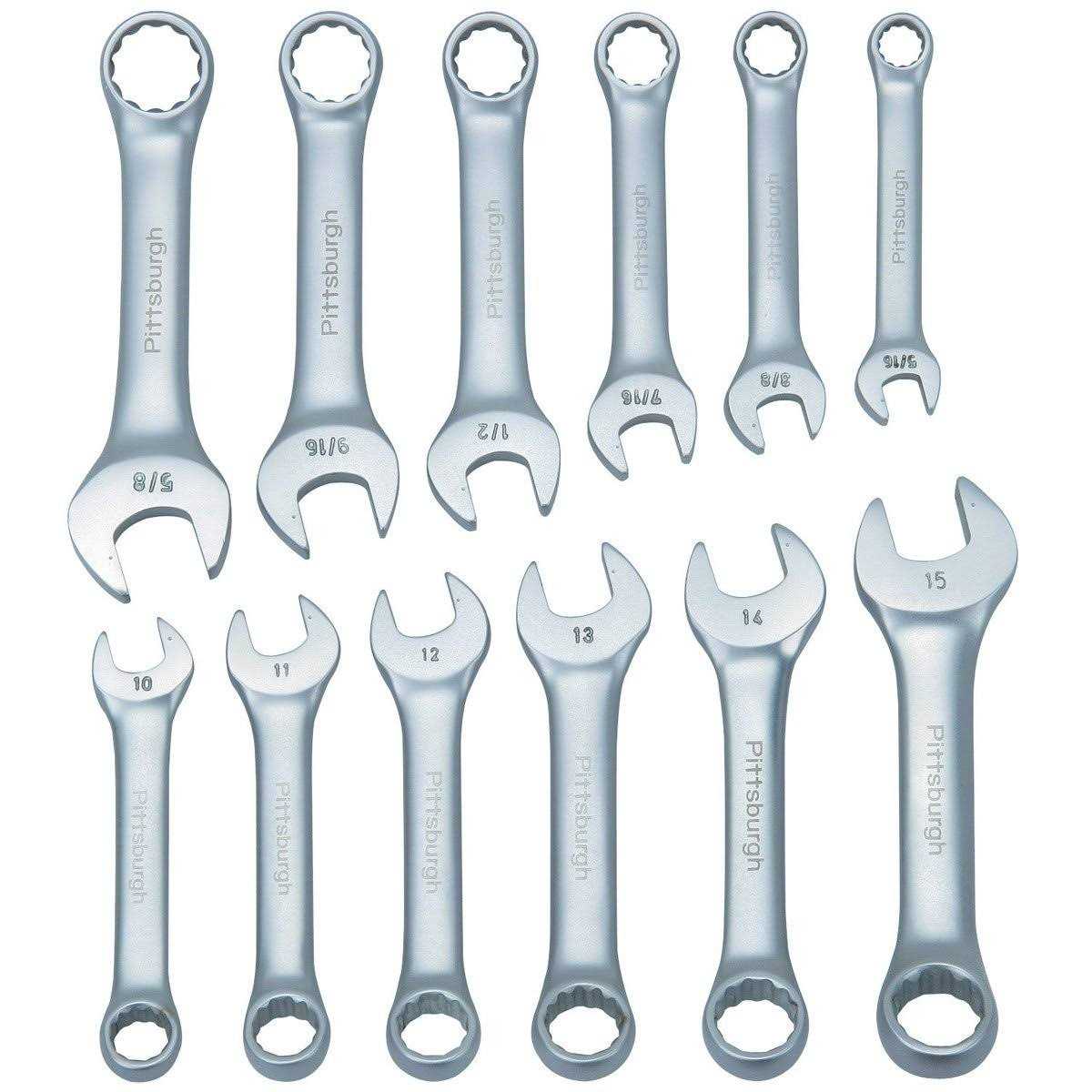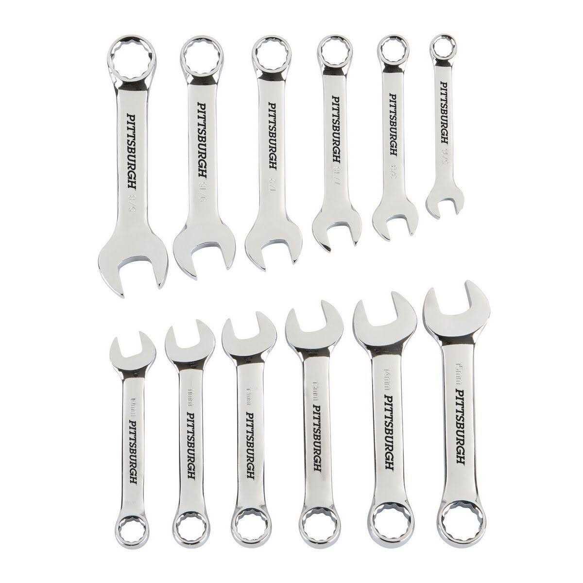 Pittsburgh 12 Piece SAE and Metric Stubby Combination Wrench Set
