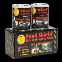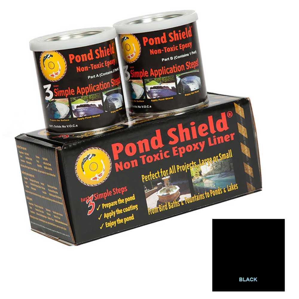 Fountain and water feature replacement partspond shield by pond armor is the finest high performance epoxy pond liner and sealer on the market today. The modified epoxy pond coating and sealer developed by pond armor produces an awe-inspiring finished surface that provides a water proof non-toxic barrier for your aquatic environment. Pond shield is a 100 percent fish and plant safe pond coating. Pond shield was designed by pond armor with the hobbyist in mind. After prepping the surface area pond shield rolls on just like paint with a short nap 1/4 paint roller or can be applied with a brush squeegee or even sprayed on. You can use 2-3 oz per kit of denatured alcohol to thin the product for easier use as it is quite thick out of the can. You simply mix both parts with the alcohol and its ready to apply. Pond armors pond shield works great for koi ponds water gardens fountains and waterfallswe always stock it in clear black tan gray white forest greenblueeach pond shield kit is 1.5 Quarts and can cover up to 60 square feet. Thats 60 square feet in just one coat for a total of 10 mils in thickness. Unlike the color versions of pond shield clear pond shield is void of pigments which means each kit is applied in several thin coats eventually being brought up to 10 mils thickness no primers or sealants needed. It can be applied to most surfaces including fiberglass concrete or cement. It is a flexible epoxy and provides a superior elongation. Simply mix both components together and apply just like paint. Cures to touch within a few hours and is safe for aquatic life. This does not mean your epoxy has gone bad. It is just cold. To remedy this tightly replace the lid on your product and place each container in a bucket of hot tap water boiling the water is not necessary. Your pond shi.