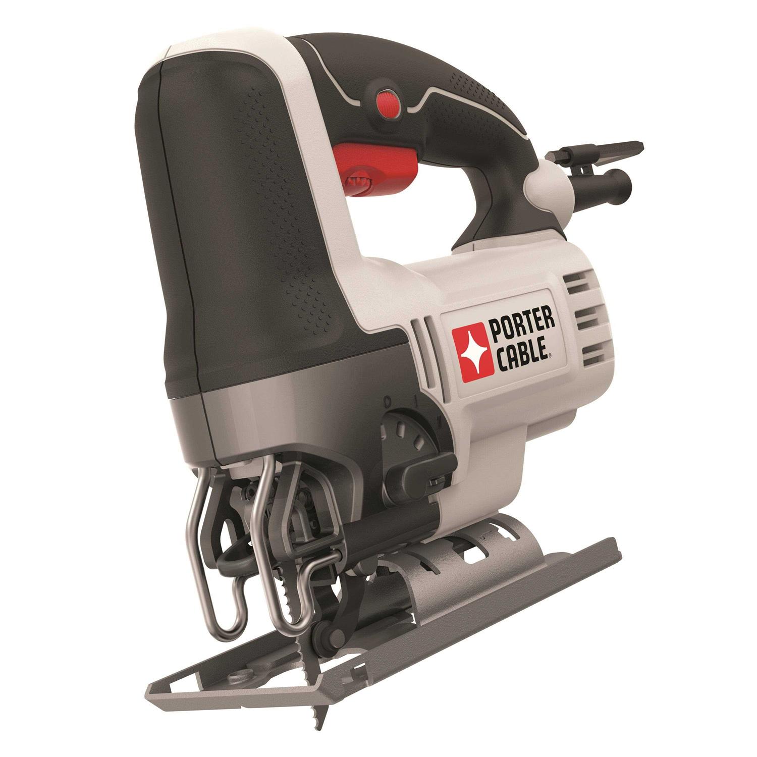 Porter cable 6.0 Amp orbital jig saw is designed with a 7 position speed-dial integrated into the trigger which provides multiple speed settings for optimal cutting results. The 6 amp motor delivers more power in demanding applications and the 4 orbital settings provide best cutting performance in a variety of materials. Offering a lock-on button for easier control this jig saw helps diminish user fatigue over prolonged usage. In addition an over-sized over-mold on the front and handle provides greater control and comfort during use. This jig saw offers tool-free blade changes to make blade replacements quick and easy ultimately resulting in minimized down time. Features 7-position speed dial 0 to 3200 spm integrated into trigger provides multiple speed settings for optimal cutting results amp motor delivers power for demanding applications. 4 Orbital settings provide best cutting performance in a variety of materials. Lock-on button provides easier control during prolonged use. Oversized over-mold on front and handle offer greater control and comfort during use. Keyless blade change clamp makes blade replacements fast and easy.