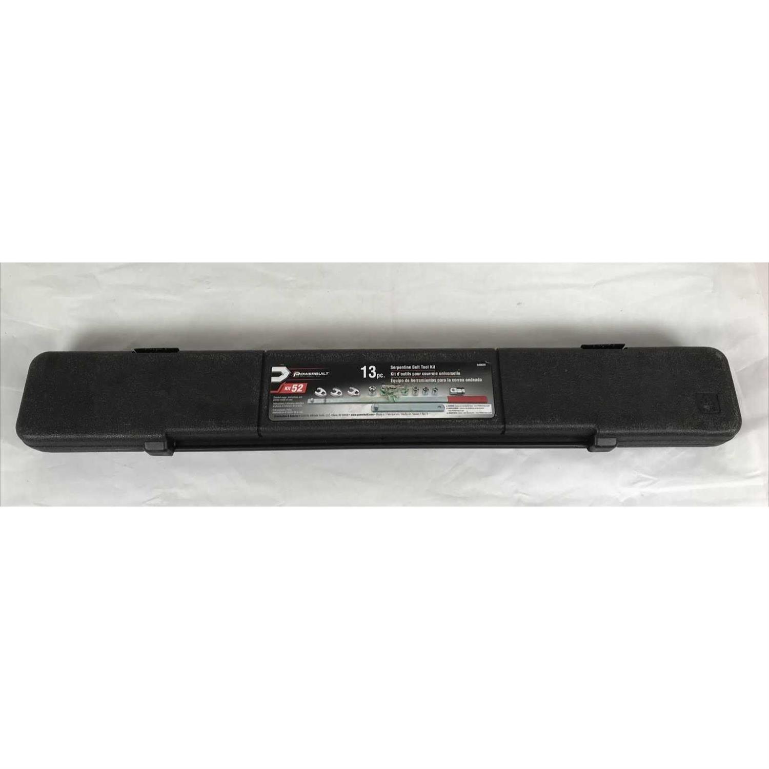 Serpentine Belt Tool Kit (648629) by Powerbuilt. Removing the serpentine belt requires loosening the belt tensioner, but sometimes a regular ratchet won’t reach. That’s when you need this innovative serpentine belt tool set.The extra-long length lets you reach the deepest bolt and the two piece extension bar/handle design allows you to change the handle angle for increased leverage. Strong and dependable enough to last a lifetime.Any specialty tool will help make an automotive repair or maintenance task easier, but Powerbuilt automotive installer tools take the concept of ‘help’ a big step further. It starts with the storage case – heavy-duty design ensures it will stand up to years of use and abuse. Inside the case lid you’ll find how to instructions and photos that show step-by-step usage instructions.
