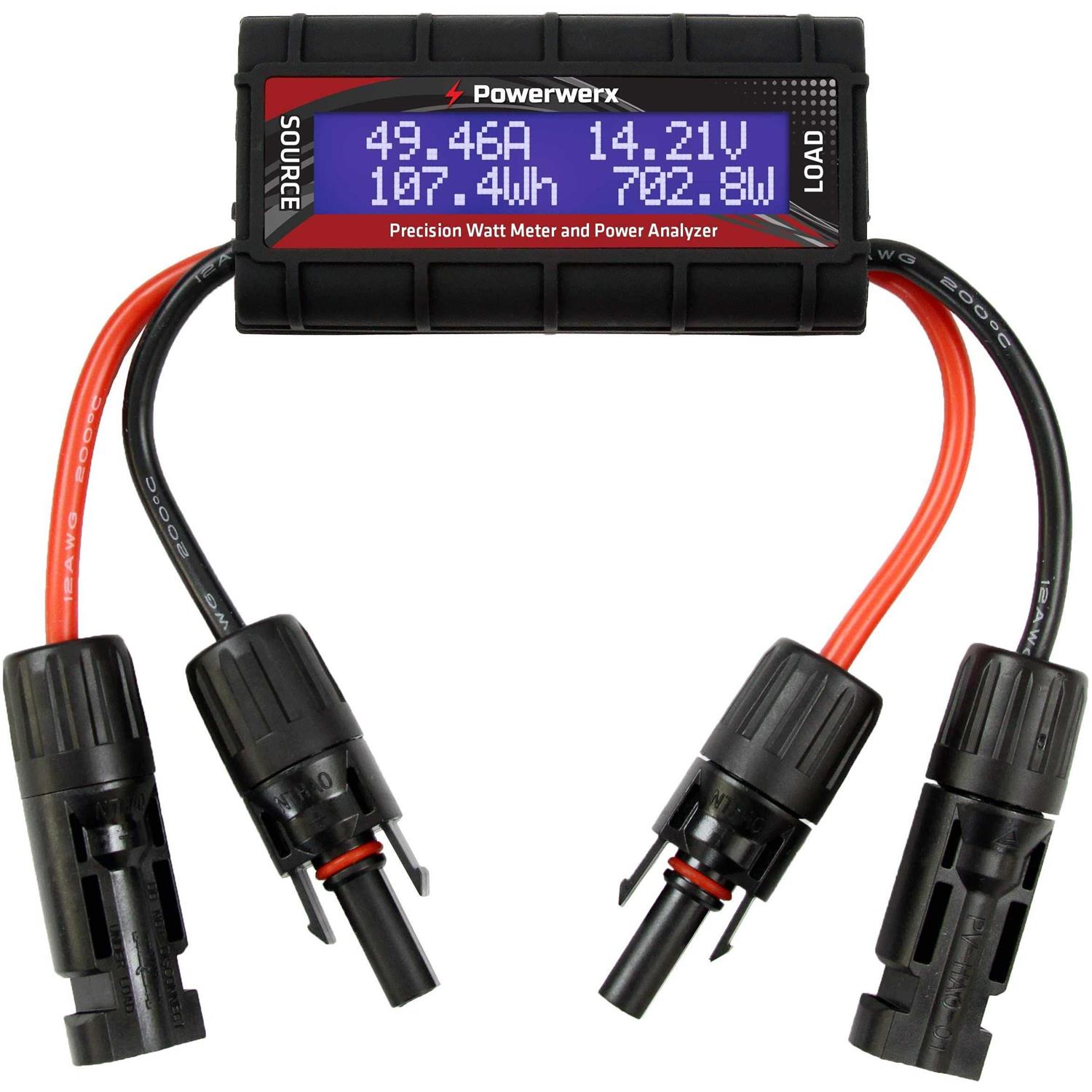 Powerwerx Watt Meter, DC Inline Power Analyzer, 45A Continuous, 12 Gauge, MC4 Solar Connectors WattMeter-MC4