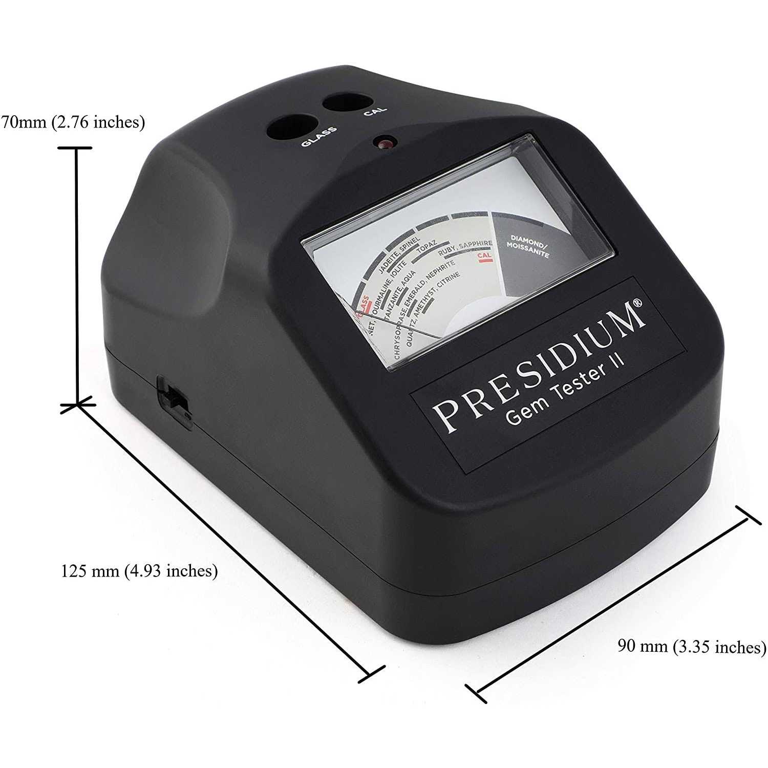 The Presidium Probe Pen consists of two linked thermometers. One heated electronically while the other is cooled by the gemstone being tested. The difference in temperature creates an electrical output which is displayed on the Analog Dial on the front of the Gem Tester II. The Analog Dial shows a color stone estimator display to assist you to distinguish between popular colored gemstones. Note that this thermal tester is not able to differentiate between natural Diamonds and Moissanites. Your tester has been calibrated during the manufacturing process. Before testing, please clean and dry the gemstone to be tested. Test gemstones at room temperature (65-80 degrees fahrenheit).
