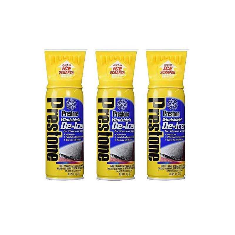 Prestone De-Icer Spray’s specially designed, micro-edge ice scraper can withstand tough use. The polycarbonate blade is stronger than conventional plastics found in many scrapers. A convenient ice scraper top on 11oz. size helps clear icy windshields.. The high methanol content in Prestone Windshield De-Icer ensures strong ice melting power.,Hardware > Tools,Prestone