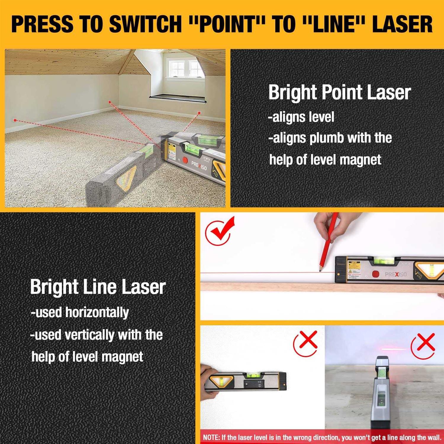 PREXISO 2-in-1 Laser Level Spirit Level with Light 100ft Alignment Point & 30ft Leveling Line Magnetic Laser Leveler Tool for Construction Picture
