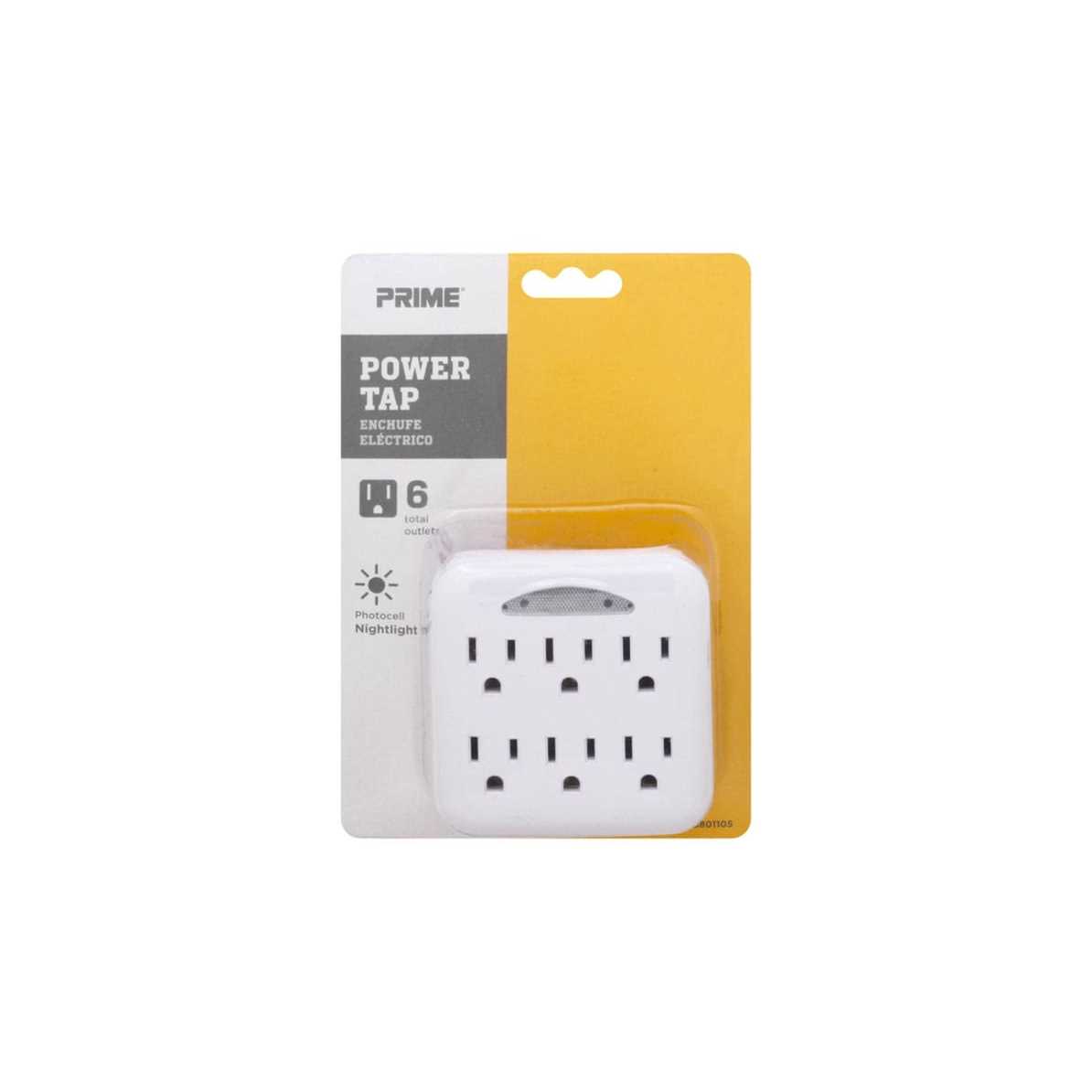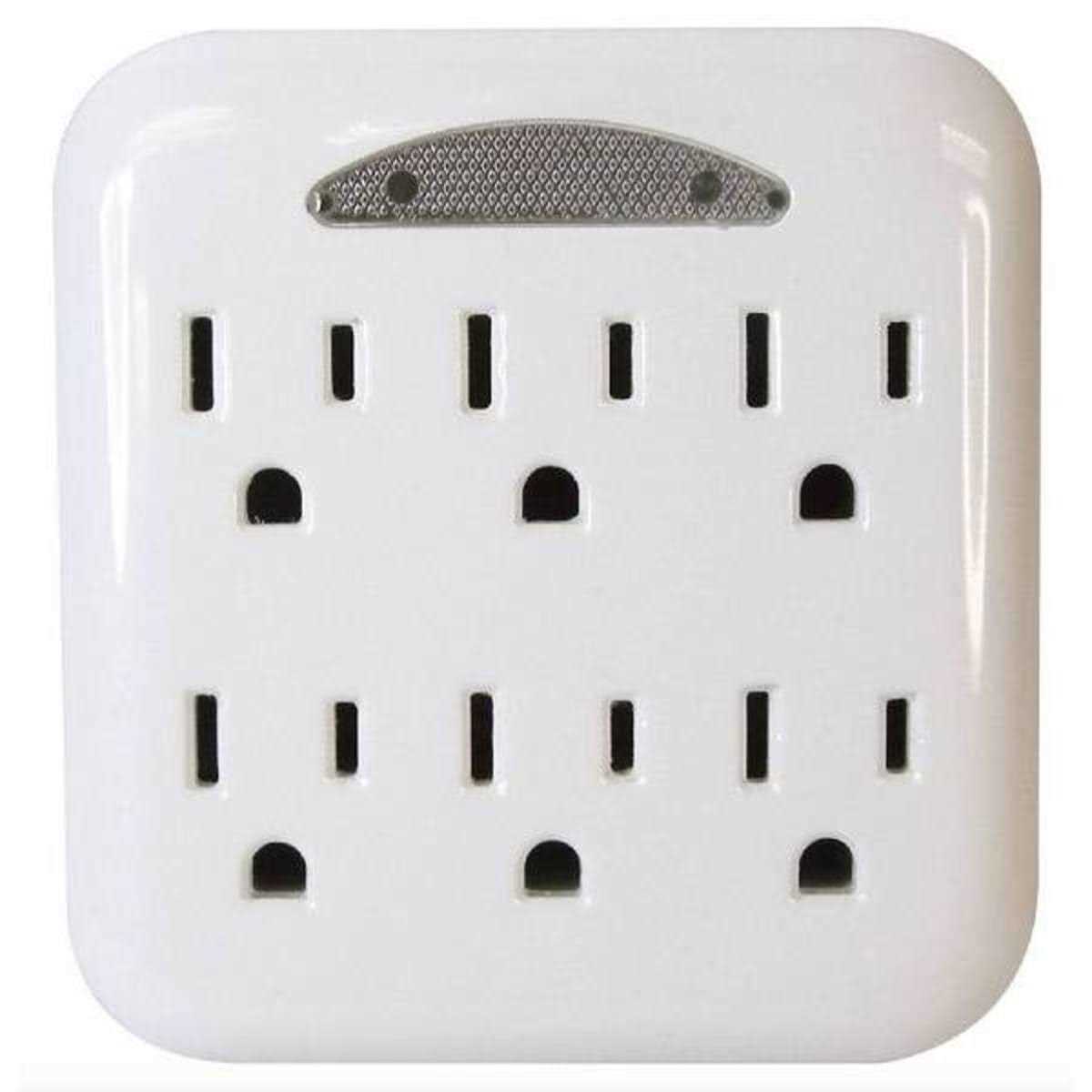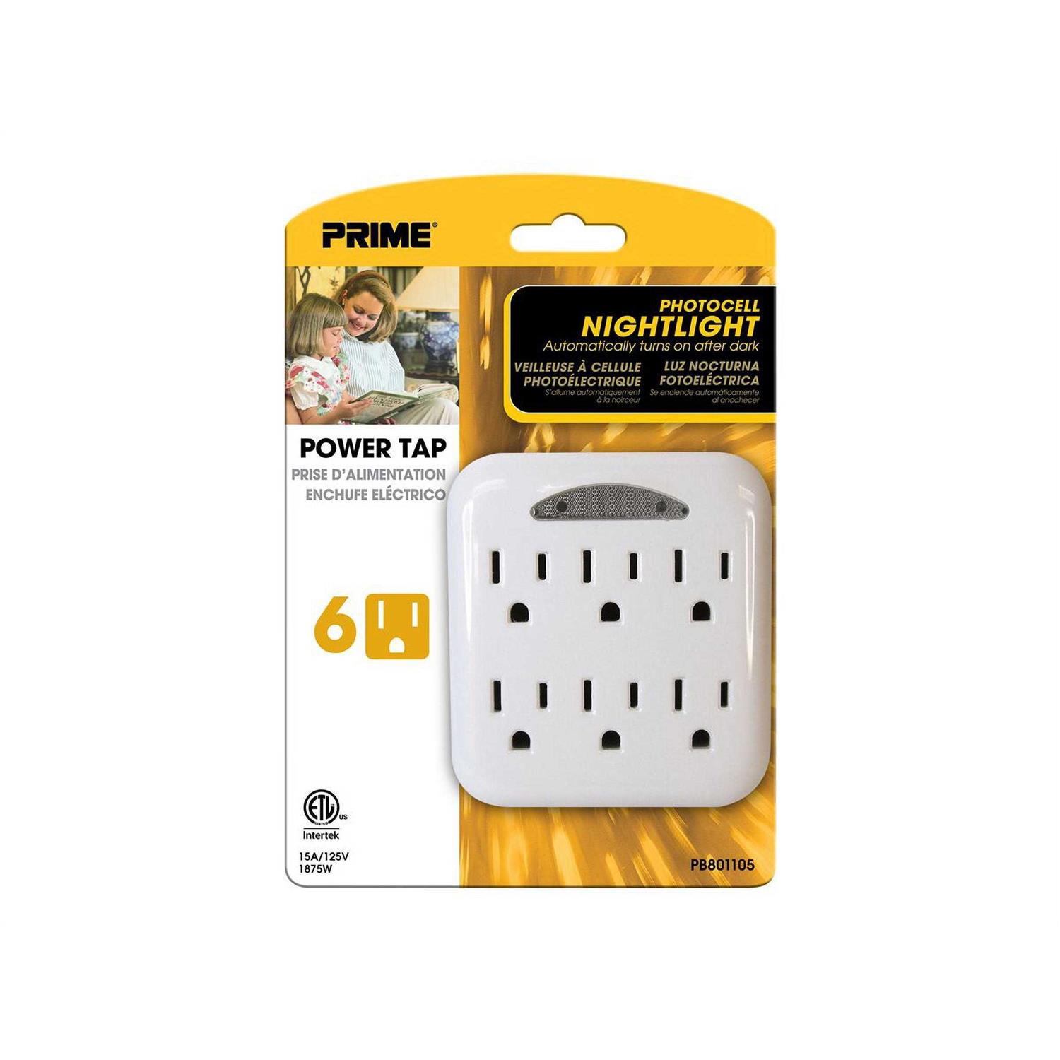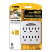This 6-Outlet power tap has a built-in nightlight that is automatically and independently controlled by a photosensor. The photosensor automatically turns the nightlight on when there is no other light in the room and turns the nightlight off when there is enough ambient light in the room. The outlets always have power.