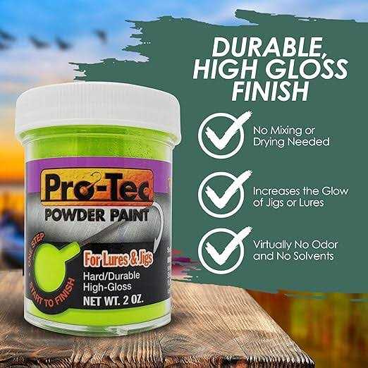 The CS Coating Pro-Tec Powder Paint is the most convenient and cost effective way to create high-quality, custom colored fishing tackle. Extremely easy to use, the tough powder paint contains almost no odor and requires no solvents, no primers, and no gloss coats. Application of the paint is a simple and straightforward process that only requires a heat source and a container for the paint. Cleanup is just as simple, and the high-gloss finish dries in seconds so you spend less time painting and more time fishing. 2 ounces of CS Pro-Tec Powder Paint will cover over 375 of your 3/8 oz jigs, making it an economical choice for all of your custom coloring needs. Available in a variety of classic fishing colors, the CS Coating Pro-Tec Powder Paint is the ideal option for creating custom masterpieces or bringing some of your old, battered jigs back into the game.
