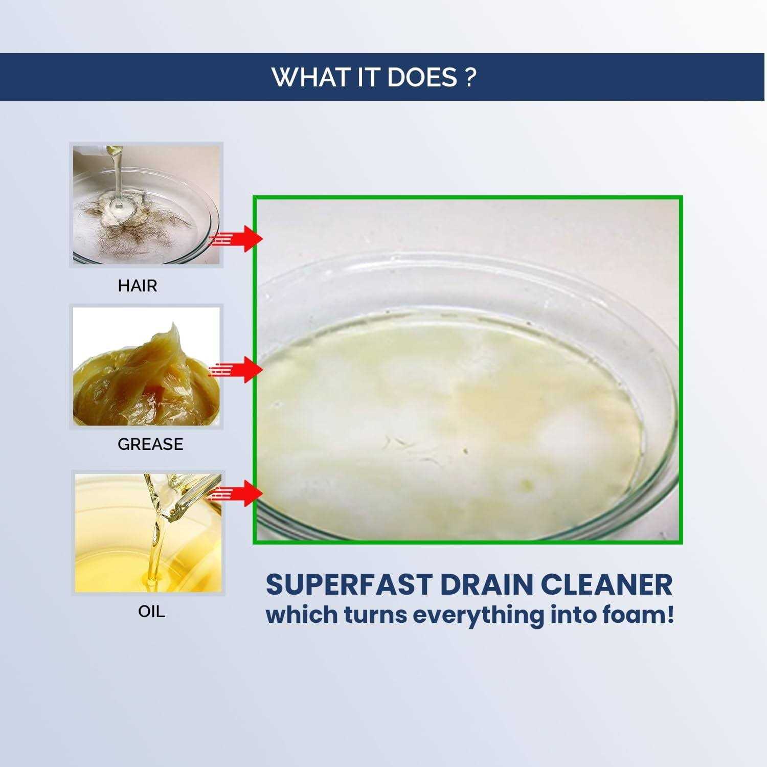 - Dissolves hair, grease and food buildup, breaks through tough clogs.