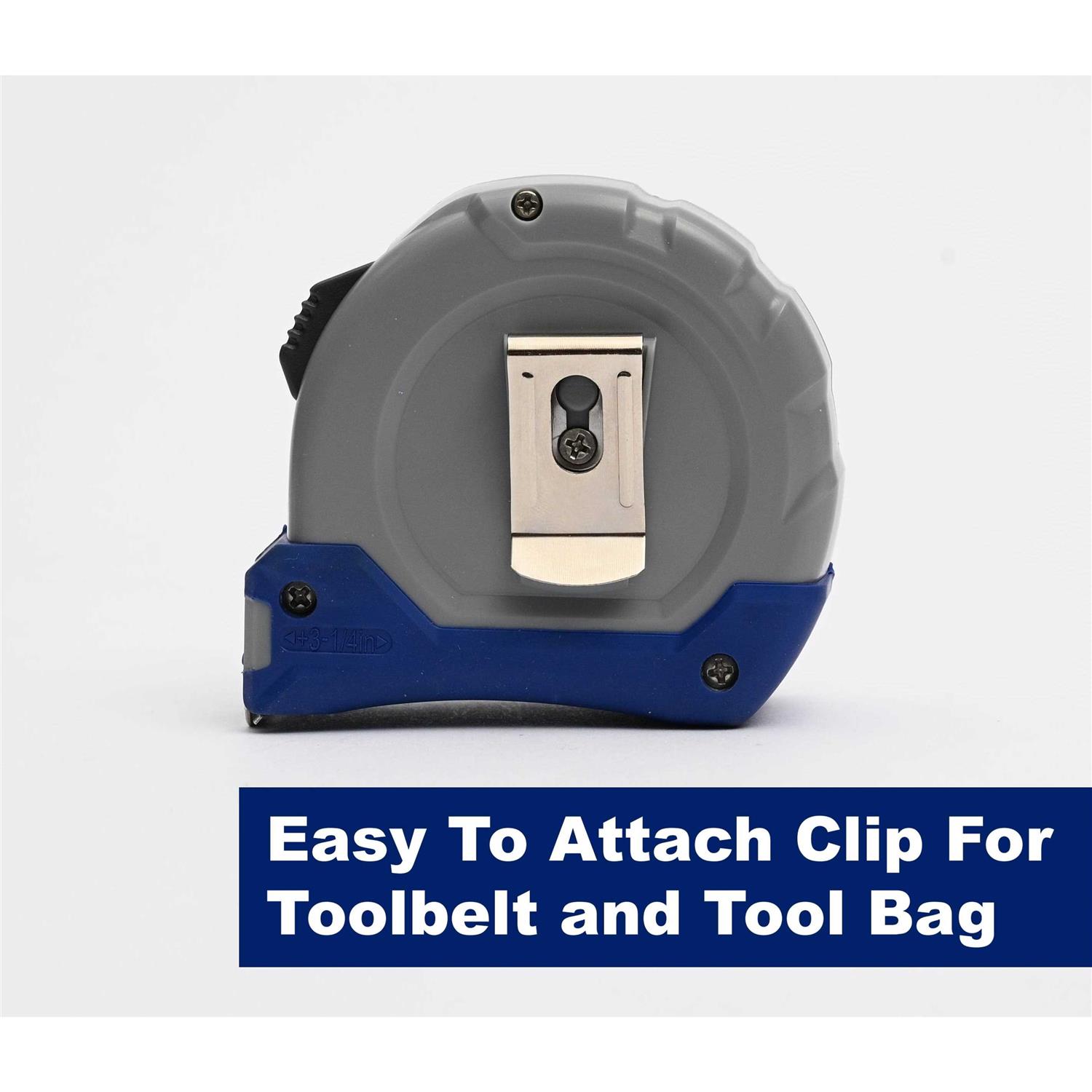 With a belt clip for portability and a top-forward slide lock, this Project Source tape measure delivers an easy-to-use and portable way to measure a work site or household job. The ABS case and rubber oversold guarantee a durable tape for tough conditions.