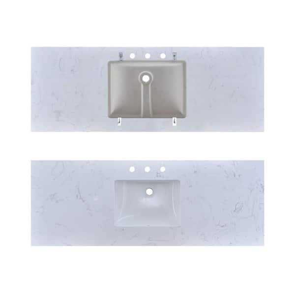 PROOX 60 in. W x 22 in. D Engineered Stone Composite Vanity Top in White with White Rectangular Single Sink