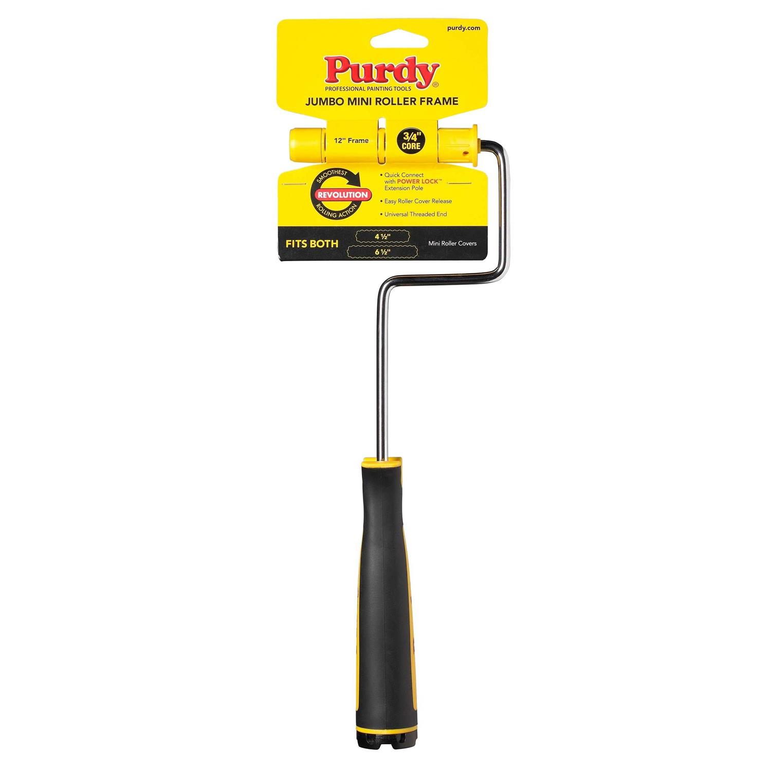 Purdy Revolution Roller Frame Features More lightweight and durable than other professional frames. The Quick Connect feature allows this frame to be used with the Purdy POWER LOCK pole. Also, can be used with any standard acme threaded pole. Long lasting durable frame. Comfortable ergonomic grip handle. Fits both 4.5 and 6.5 mini roller covers. Easy cover release ensures a no mess clean up.
