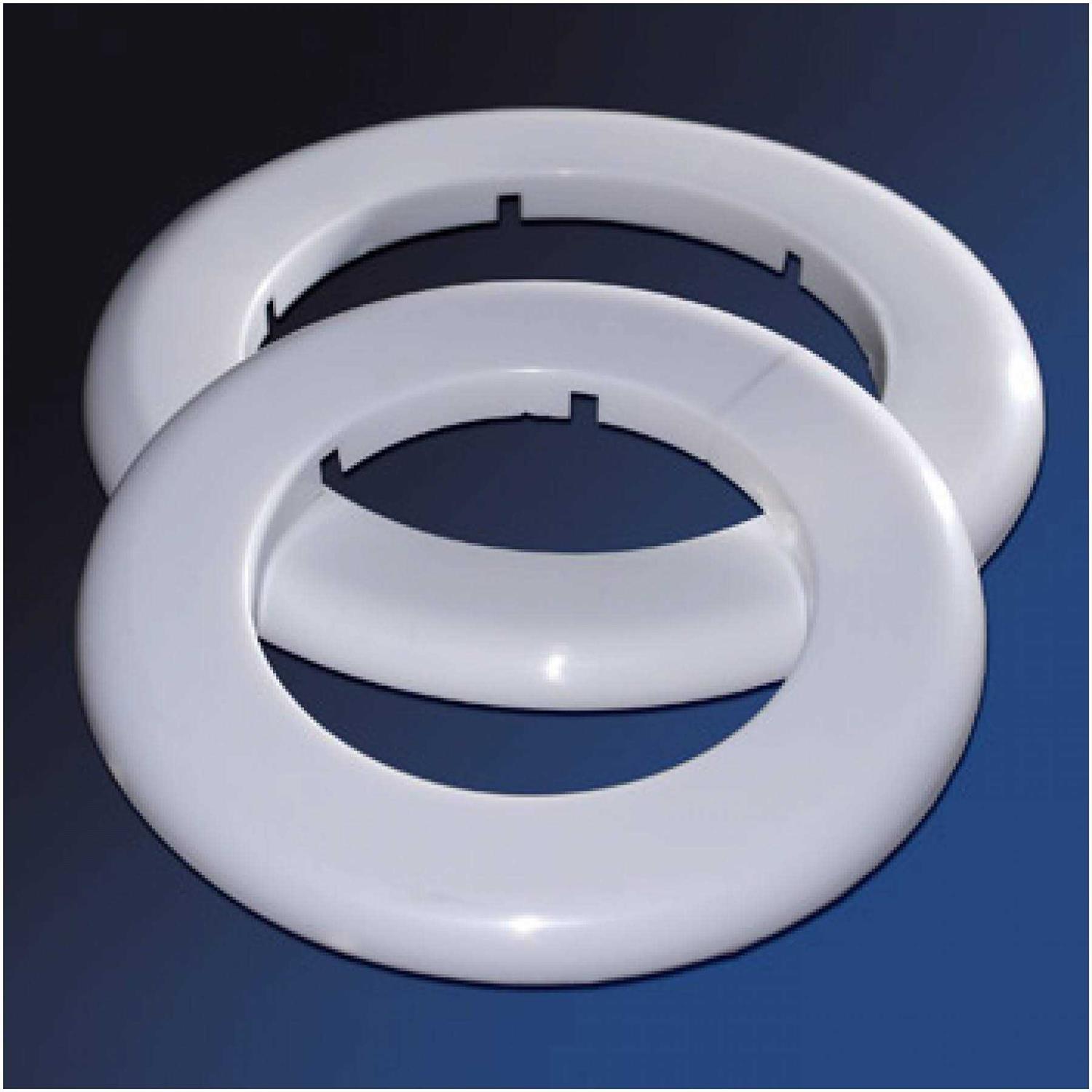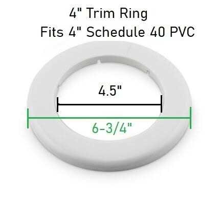 Great for cleaning up a messy hole. Can be slipped on the pipe or there is a molded breakaway split to install after the pipe is in place. A little silicone will hole in position. Designed for Schedule 40 pipe 3.5 inch or 4.5 inch ID.