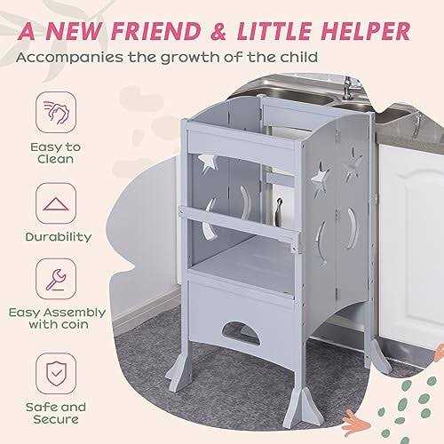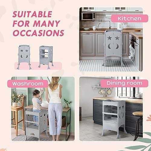 Be the first to review “Qaba Wooden Kitchen Step Stool for Kids Foldable Toddler Tower Helper Stool for Kitchen Counter with Support Handles Safety Rail”