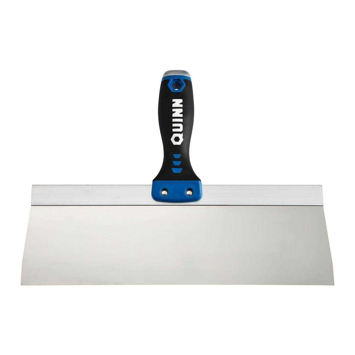 This 12 in. stainless steel taping knife from QUINN is ideal for taping, patching and finishing large areas of wallboard. The taping knife features a stainless steel blade for added strength, ergonomic comfort grip handle for reduced fatigue, and a rivet attached handle for durability.