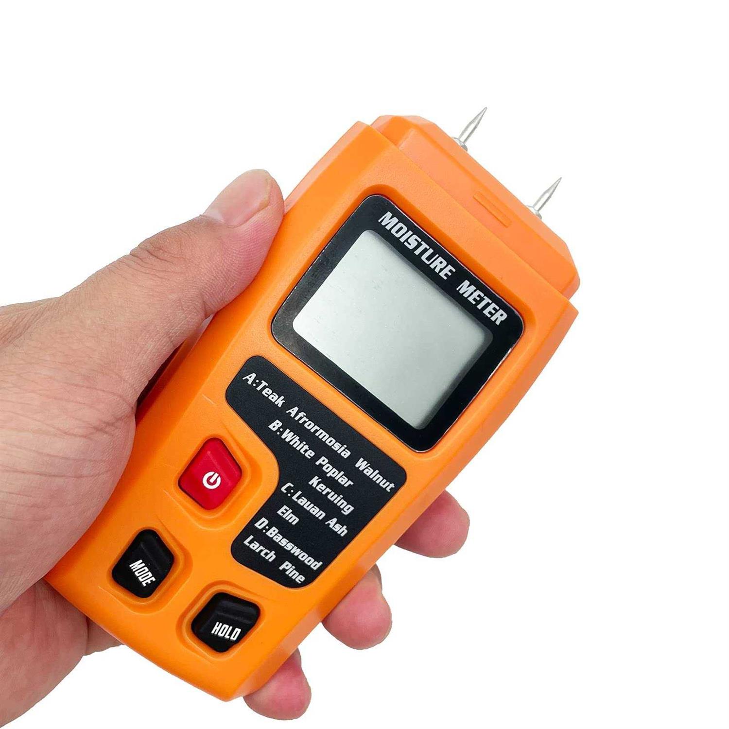 QYQRQF Digital Wood Moisture Meter Wood Humidity Tester Hygrometer Timber Damp Detector Large LCD Display (Orange)