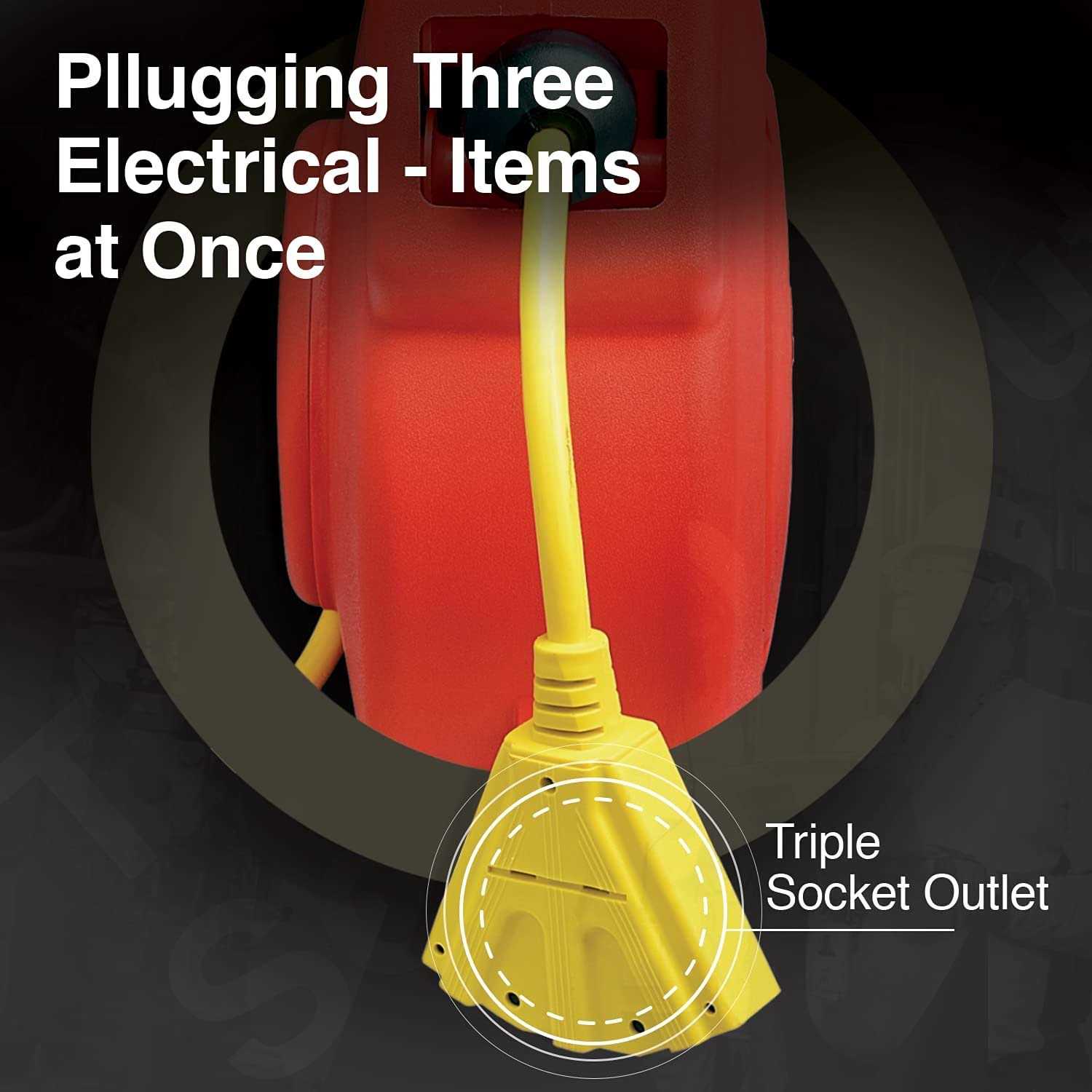 Reelworks Heavy Duty Extension Cord Reel, 12AWG/3C SJT, Triple Tap, 40′