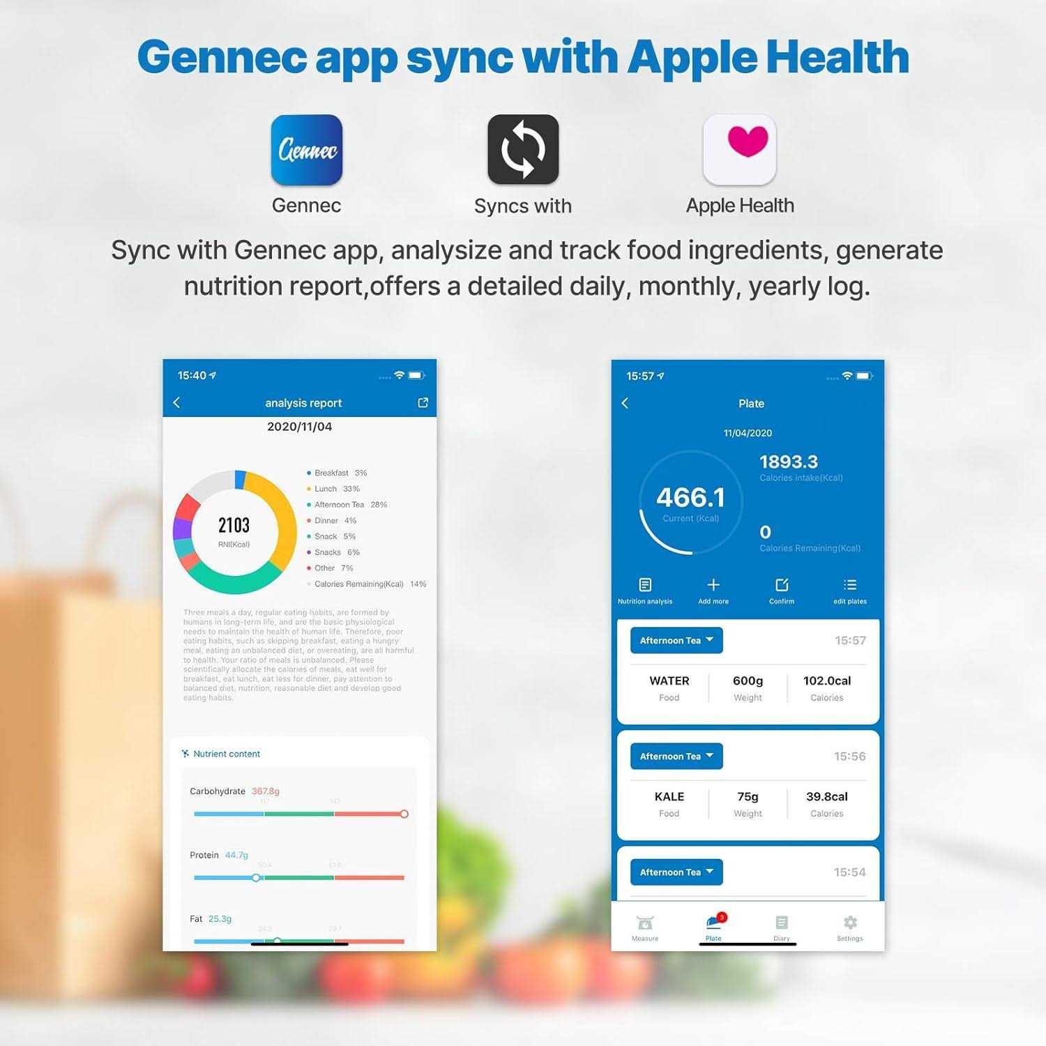Why Choose RENPHO Nutrition Food ScaleNo matter what your health goals are, eating well is an important part to help you reach the goal. Every nutrient ingredient is very important to your health. RENPHO nutrition kitchen scale smart track and analyze up to 23 nutrition facts including calories, fat, protein, carbohydrates, etc. Bluetooth Control Through the Bluetooth connection, many functions of the scale, such as peeling or converting units, can also be easily operated on the phone screen using the Gennec app. Know Your Ingredients Search for your food item from USDA’S database of nearly 320,000 food items. Detailed nutrition information helps you stay on track to meet your health goals. Diary Feature You can easily track the nutrition facts of your every square meals. Keep a nutrition diary to witness the way to health. Coffee Scale with Timing by APP With coffee maker function to help you DIY coffee freely. APP supports the making time calculating and shows the ratio between coffee beans and water. (Timer Function built-in APP) Multiple Units With gram, milliliter, ounce, fluid ounce, pounds, five measurement units. Whether you’re measuring solids or liquids, there’s a unit that will help you get the most accurate reading.