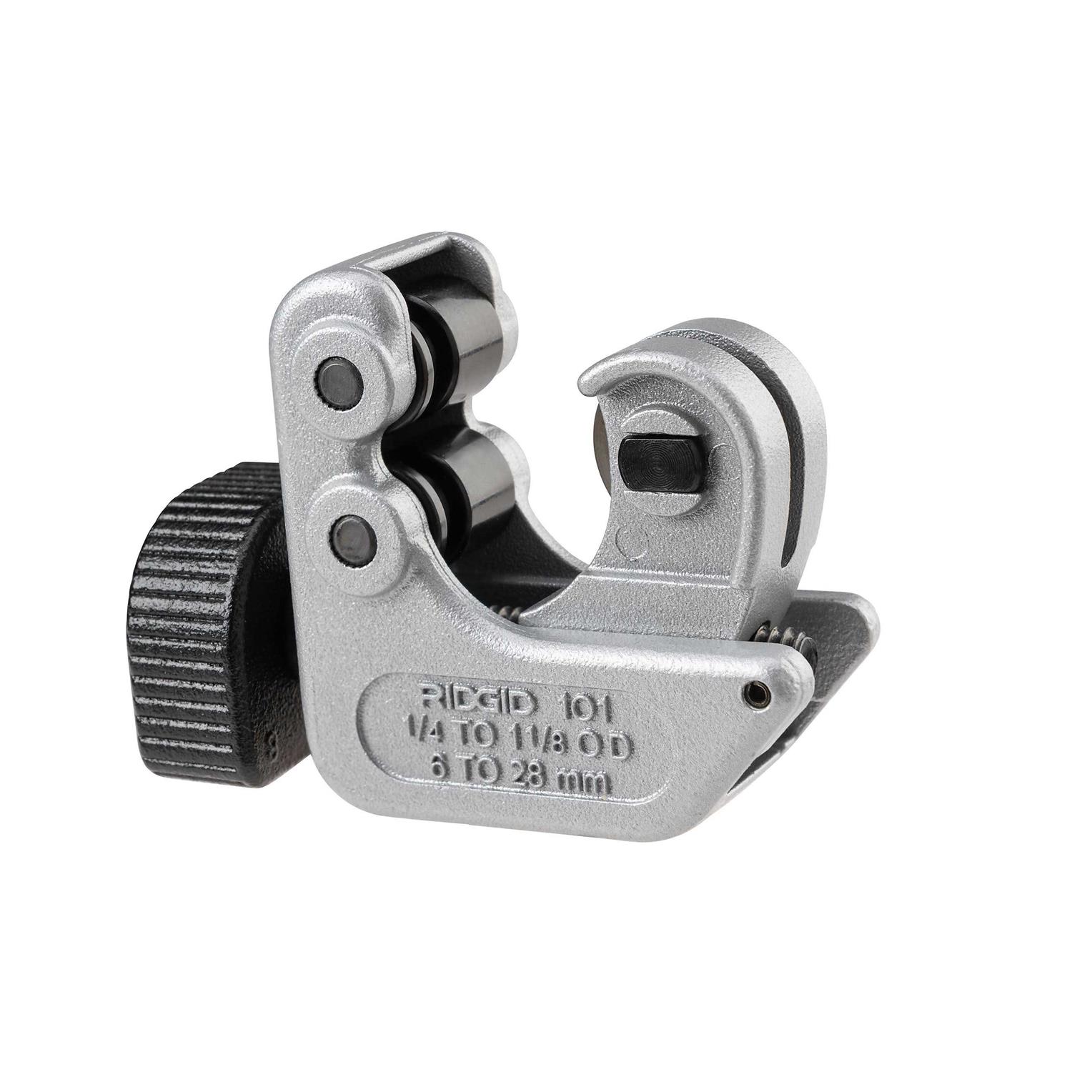 The RIDGID #101 Midget Tubing Cutter lets you quickly cut pipes to your desired length. It features a shorter design than most standard cutters so you can cut out sections of pipe already installed within a wall. This copper tubing cutter is also compatible with aluminum for extra versatility. The tool can cut pipes that vary in width from 1/4 inch to 1-1/8 inches so you can use it to accomplish multiple projects. It has a knurled knob that’s easy to grip and turn for convenience and comfort. This cutter is easy to fit in your pocket so you can always have it on hand whenever you need.
