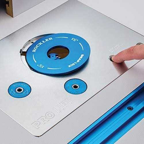 Brand:ROCKLERFeatures:Woodworking Router Lift: Two patent-pending features raise the Rockler router table insert plate with lift into a class of its own: ultra-fast ”Quick-Gear” height adjustments and ”Snap-Lock” tool-free insert ring changes. – Easy Bit Changes: Raise your router table fast with the Quick-Gear, then down-shift to the precision gear for fine adjustments. Our router table mounting plate has a snap-Lock insert ring for easy bit changes. – No Tools To Search For: Push the button to release the insert ring, then wind the Quick-Gear to raise the bit above the router lift table in just seconds. No tools to search for and no screws to lose. – Use The Adjustment Gear: Once the bit is installed, quickly lower it, and click in the insert ring, and use the fine adjustment gear of our lift pro router to set the final height to within 0.001”. What’s Included? This Router Lift Kit includes (1) Rockler Pro Lift Router Lift, (1) Aluminum router plate (3/8” thick), (1) Insert ring (1-1/2” I.D.), and (1) Set of hex keys on a key chain. – Details:Elevate your woodworking precision with the Rockler Pro Router Lift, a top-tier tool designed to streamline and enhance your routing experience. This lift system stands out with its innovative ”Quick-Gear” height adjustments and ”Snap-Lock” insert ring changes, both patent-pending featur…