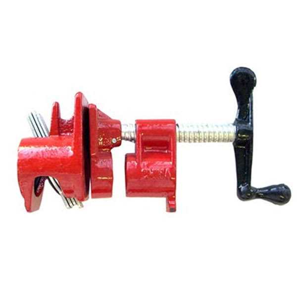 Tall jaws provide a full 2-1/4” of throat depth (#35359, sold separately), which provide a full 1” of engagement with the workpiece on the lower set of clamps. IMPORTANT NOTE: Pipe not included. Fits standard 3/4” NPT pipe (approximately 1” OD x 3/4” ID). Clamping face clamp has pre-drilled holes for mounting pads, cauls, jigs, and specialty fixtures. Built-in wall pipe clamp hook for easy, secure hanging on the wall-no need to close the rockler clamps. Quadruple clutch plates provide a secure, no-slip lock for the tailstock on standard 3/4” pipe.