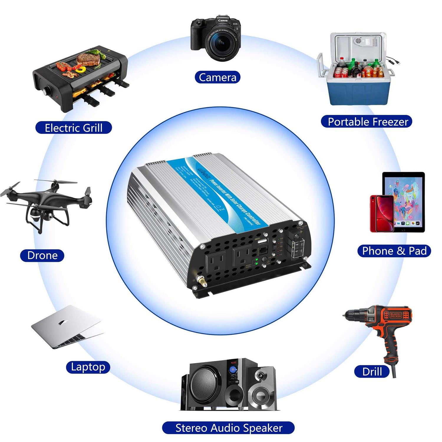 1200W Power Inverter DC12 Volt to AC 120 Volt with 20A Solar Charge Controller and Remote Control & USB Port for RV Truck Solar System