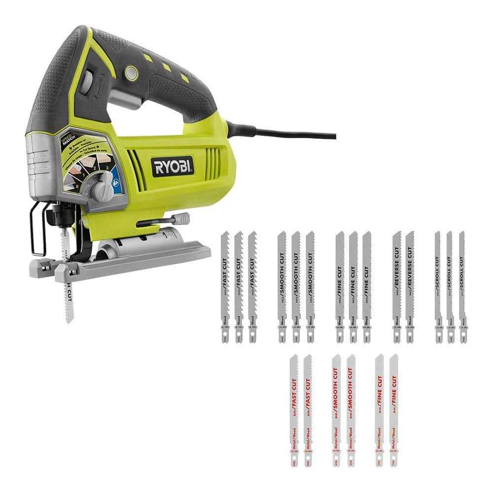 Ryobi 4.8 Amp Corded Variable Speed Orbital Jig Saw with All Purpose Jig Saw Blade Set (20-Piece)