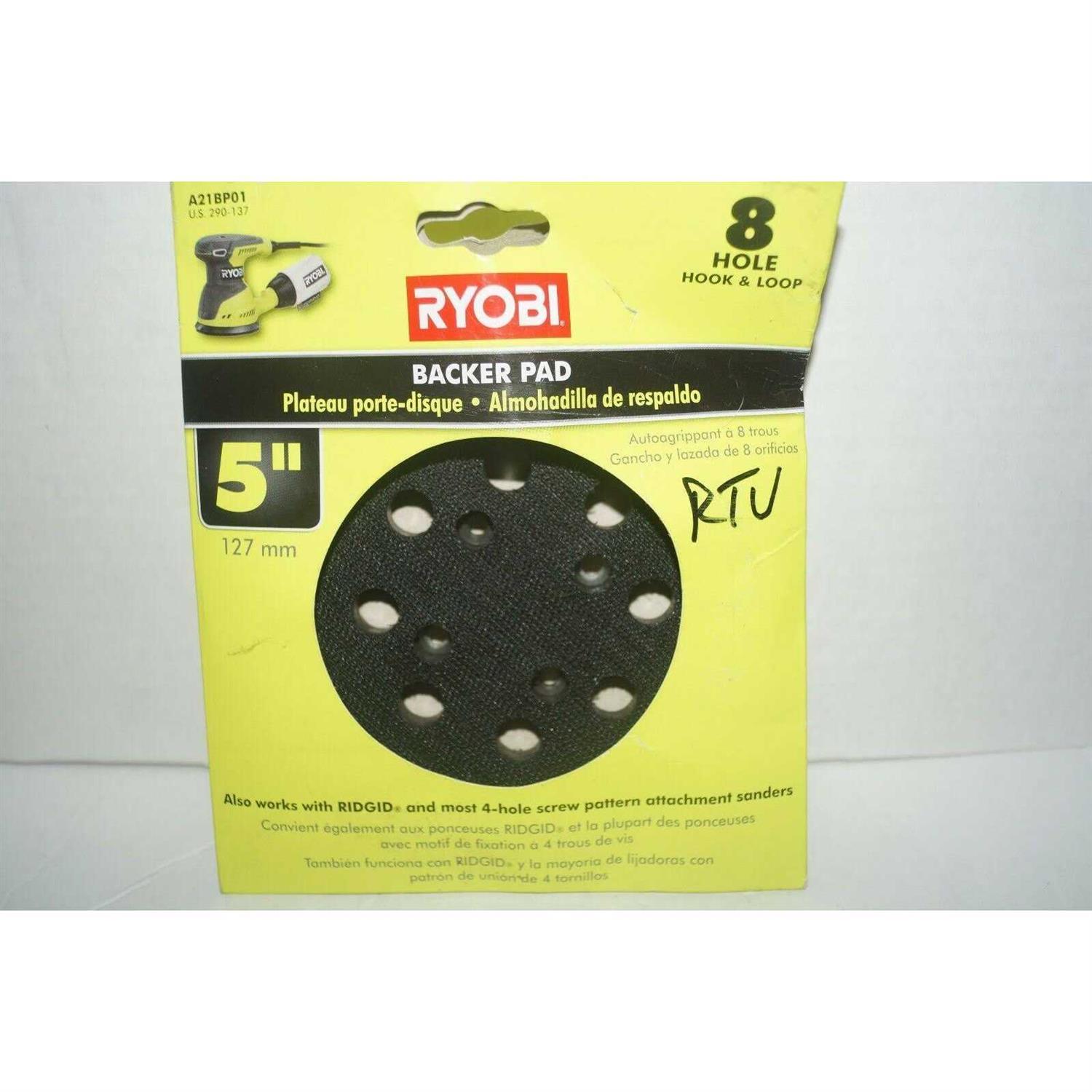 Fits all 5 in. Ryobi random orbit sanders Backing pad works with all PSA sandpaper Hook-and-loop conversion pad for fast, easy changes Pad has an 8-hole pattern for increased dust collection Ryobi introduces the Ryobi Backing Pad. This backing pad is compatible with all Ryobi random orbit sanders. The backing pad can be used with any PSA sandpaper type.