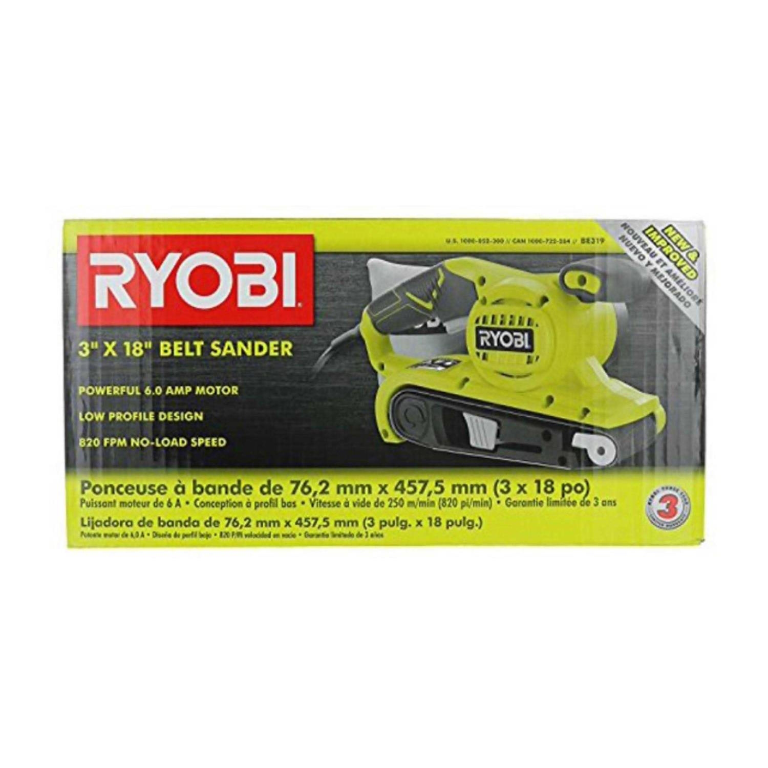 With an 6 amps of power being drawn into this powerful motor youll be able to tackle a variety of finishing projects with ease. Its compact size allows you to squeeze into tight spaces for renovation projects around your home or job site. The rubberized grip around both handles of the sander allow you to properly control it in even the slipperiest of conditions. While the sander comes with a medium-grain belt for your convenience you can swap it out for nearly any 3″ x 18″ belt to tackle different kinds of jobs. Switching the belts out is easy with the tool-less changing system defined by the latch on the side of the tool. Whether youre a diy-er or a professional woodworker youll find a ton of utility in the robust design and useful features of the Ryobi BE319.