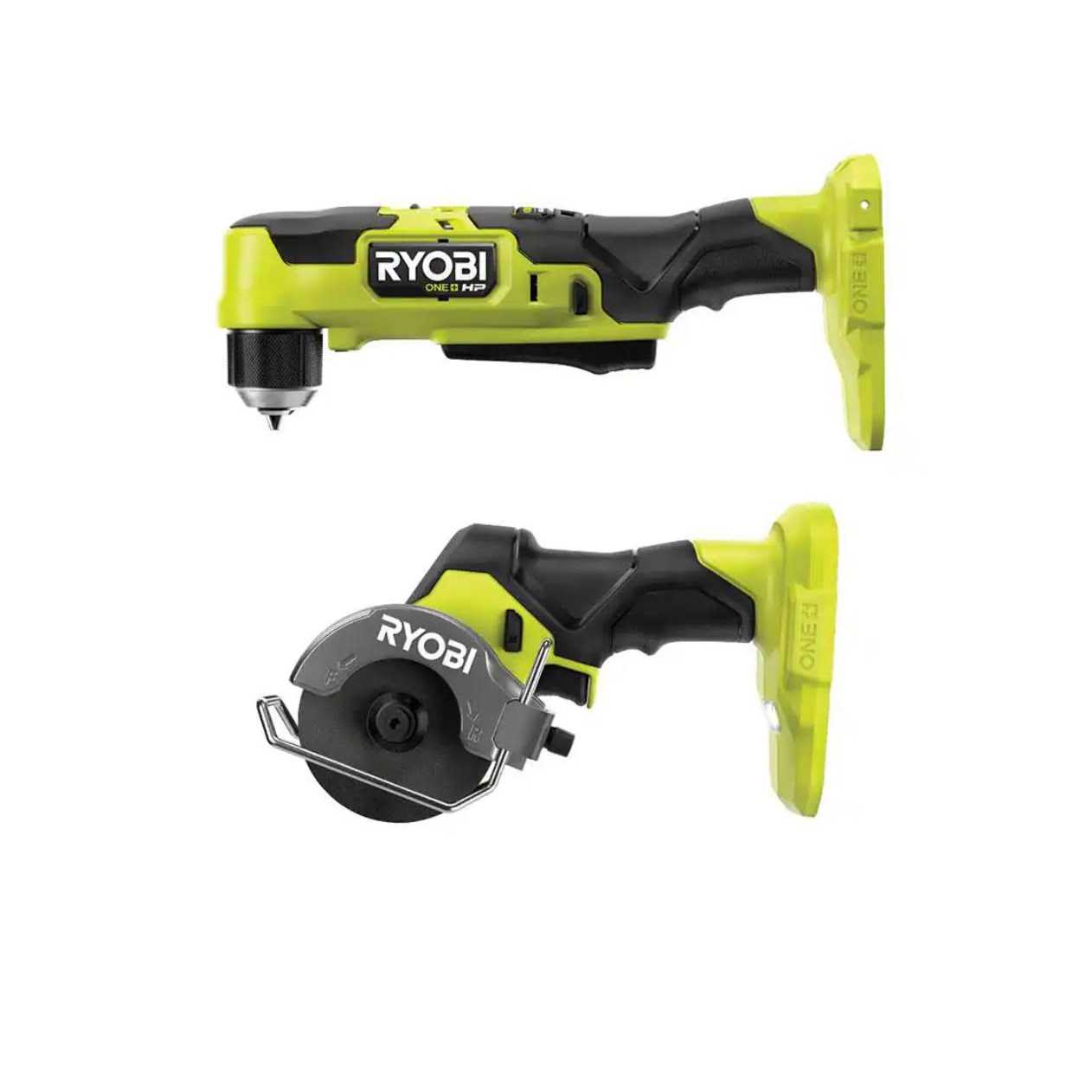 Ryobi PSBRA02B-PSBCS02B One+ HP 18V Brushless Cordless Compact 2-Tool Combo Kit with 3/8 in. Right Angle Drill and Cut-Off Tool (Tools Only)