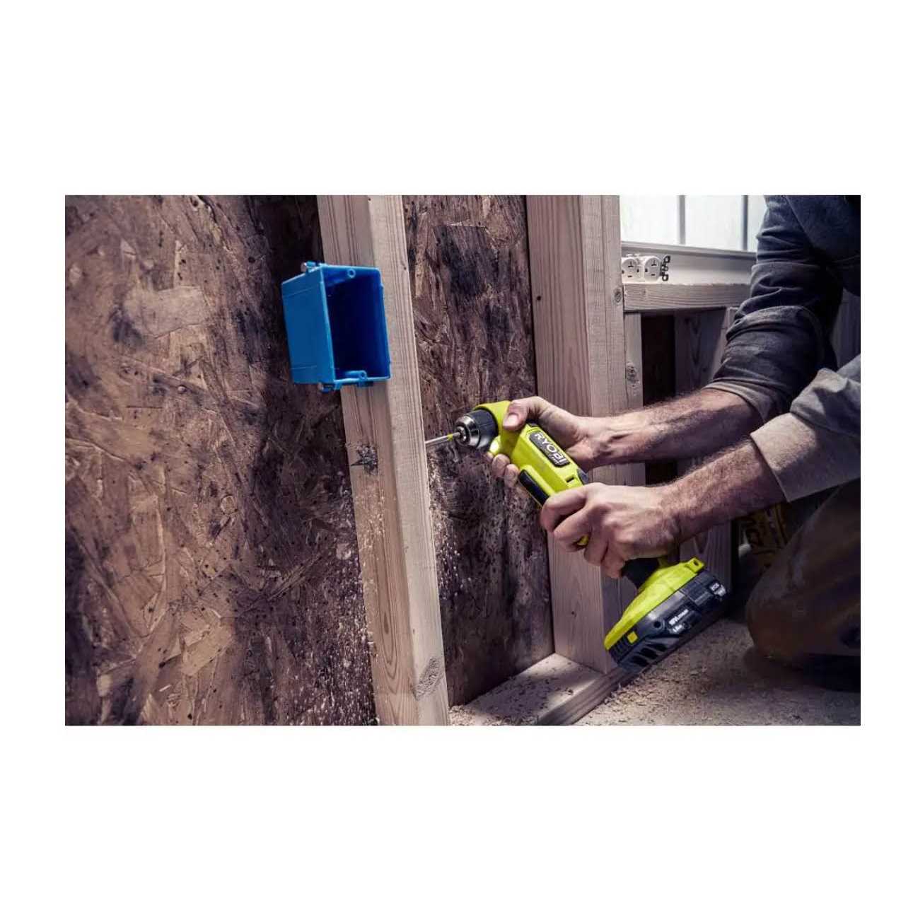 Right Angle Drill and Cut-Off Tool (Tools Only) PSBRA02B-PSBCS02BItem Condition: NewBrand: RYOBIModel: PSBRA02B-PSBCS02BProduct InformationRYOBI introduces the ONE+ HP 18V Brushless Cordless Compact 1/4 in. Impact Wrench Kit with (2) 1.5 Ah Batteries, Charger, and Bag. At a length of just 5.3 in., the ONE+ HP 18V Brushless Compact 1/4 in. Impact Driver is 26% more compact and over 23% lighter than the brushed version making it ideal for working in tight spots and completing overhead applications without strain. The brushless motor provides up to 1,700 in/lbs. of torque-and up to 3,800 IPM (Impacts Per Minute) to quickly drive a variety of fasteners. You’ll also appreciate the knurled 1/4 in. hex collet with one-handed bit release. Impact Wrench is designed to live up to professional expectations, delivering a powerful solution in the most compact and lightweight design. Best of all, it is part of the RYOBI ONE+ System of over 260 cordless tools that all work on the same battery platform. Backed by the RYOBI this ONE+ HP 18V Compact Brushless 2-Tool Kit Includes a 1/4 in. Impact Driver, 4-Mode 3/8 in. Impact Wrench, (2) 1.5 Ah Lithium-Ion batteries, charger, tool bag, and operator’s Manual. Brushless Motor provides longer runtime, longer motor life, and more power Impact Driver: Compact size at 5.3 in. and lightweight Impact Driver: Provides up to 1,700 in/lbs. of torque Impact Driver: Variable speed trigger for control of up to 2,900 RPM Impact Driver: Knurled 1/4 in. hex collet for one-handed bit release Impact Driver: On-board LED worklight to illuminate workspace Impact Driver: Optimized impacting mechanism delivers up to 3,800