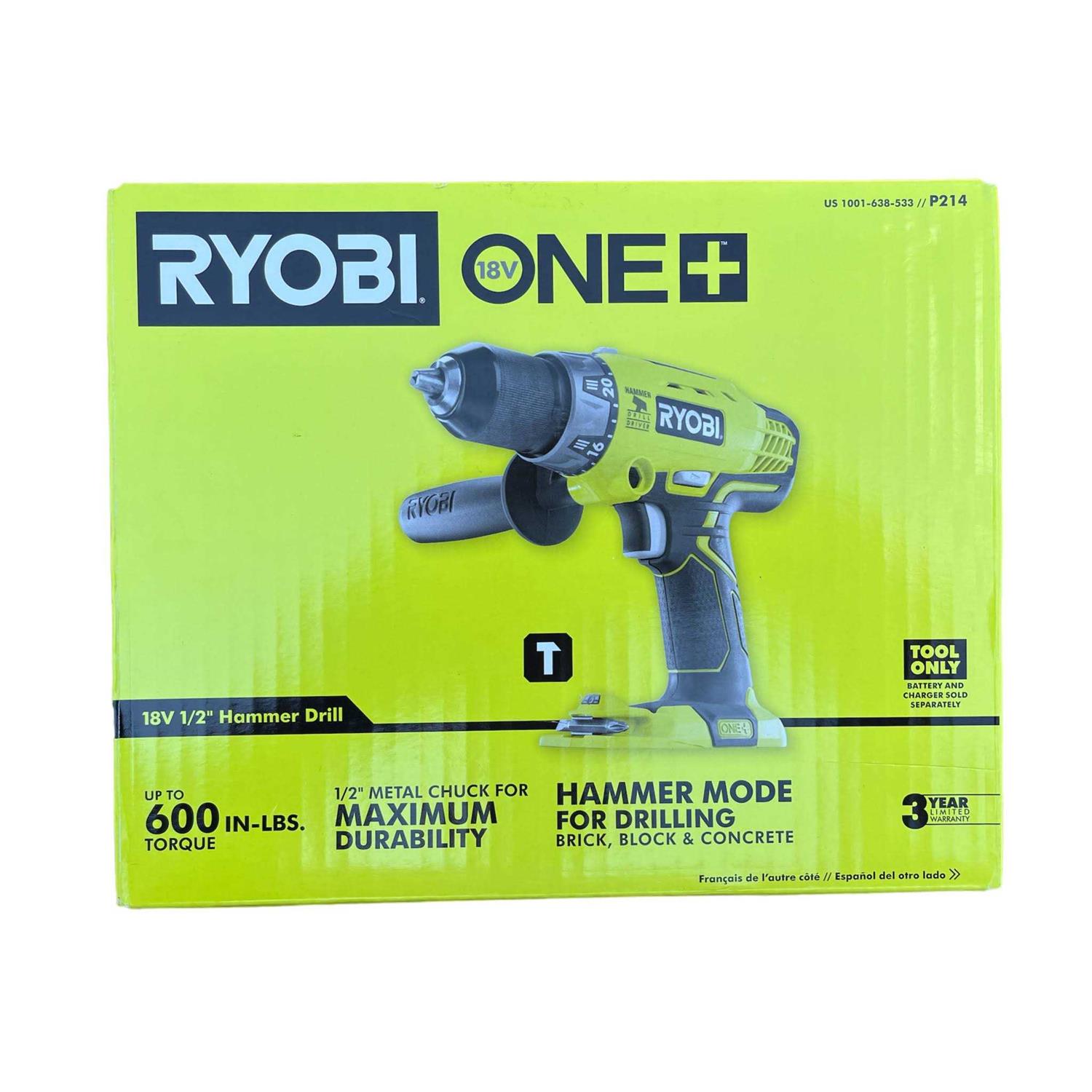 Drilling Hammers by RYOBI. Details:RYOBI introduces the 18-Volt ONE+ Cordless 1/2 in. This hammer drill/driver features a variable 2-speed transmission for precision and versatility and delivers up to 1,600 RPM and 24,000 BPM for powerful performance. The 24-position clutch handles high-torque applications and the clutch override allows quick mode changes from drilling to driving. New and improved GRIPZONE overmold provides optimum grip and user comfort. Cordless Hammer Drill/Driver works with all RYOBI 18-Volt ONE+ batteries. The 1/2 in. Hammer Drill/Driver includes an auxiliary handle, a screwdriver bit, and an operator’s manual. 24-position clutch and 2-speed gear box to match drilling and driving needs 1/2 in. all.
