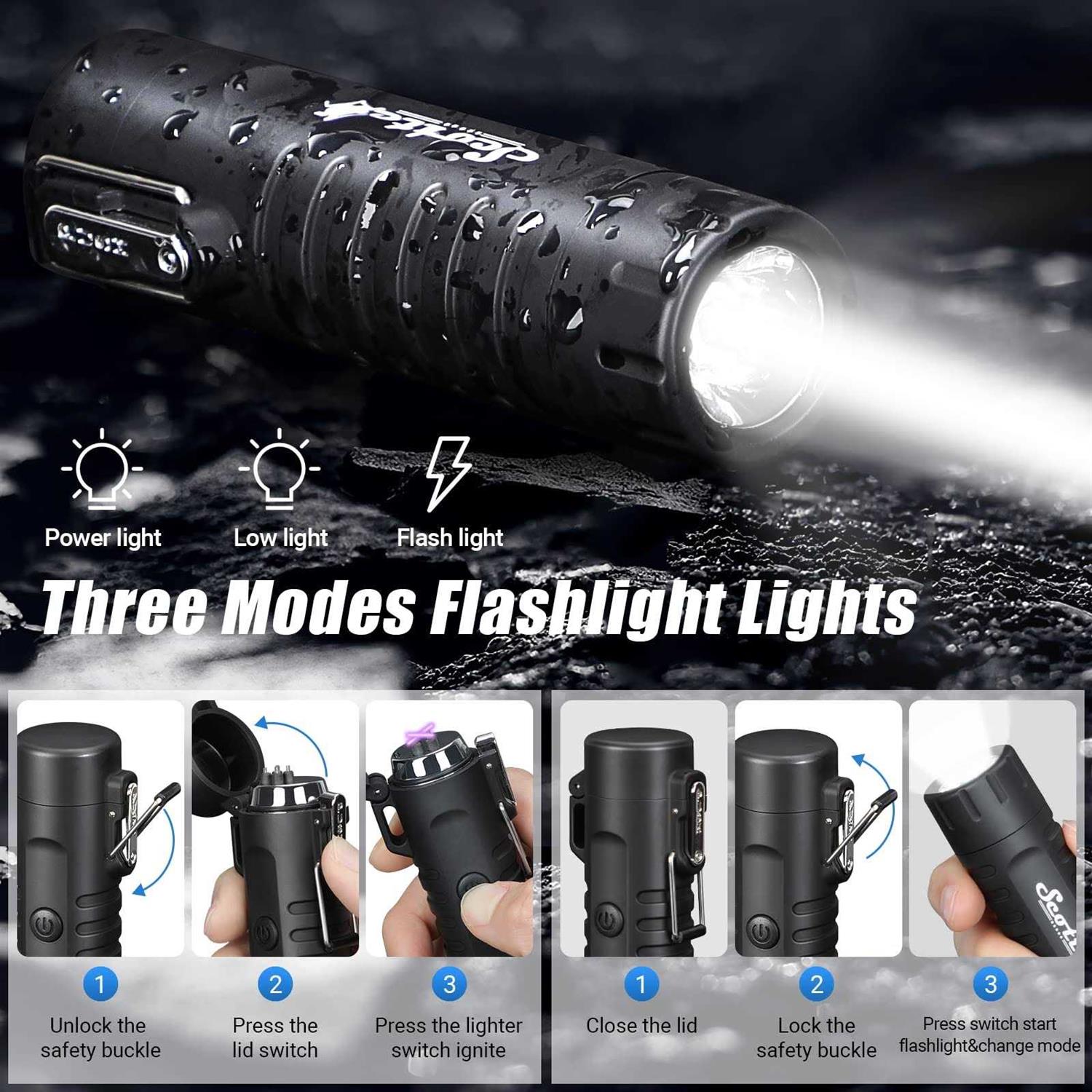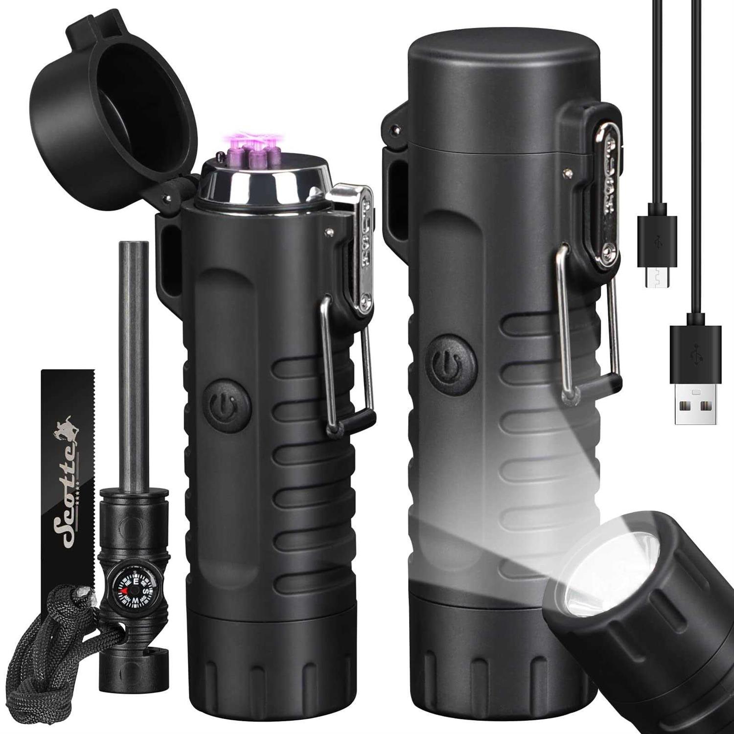 Scotte Plasma Windproof arc Lighter Electric Lighter and LED Flashlight