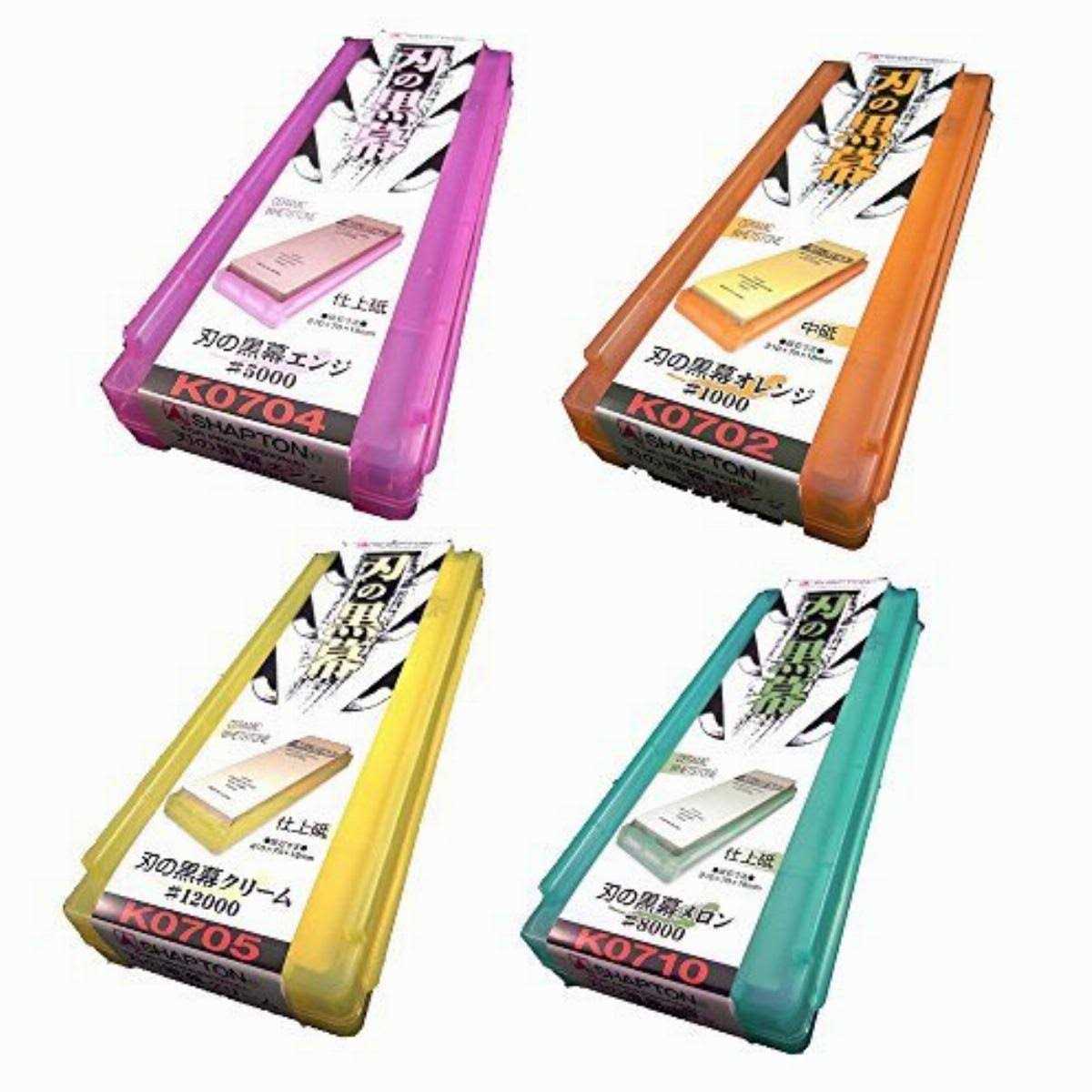 Shapton Ha No Kuromaku Ceramic Whetstone (F-Set) Medium Grit (#1000) + Fine Grit (#5000) + Fine Grit (#8000) + Ultra Fine Grit (#12000) + Kitchen Clo