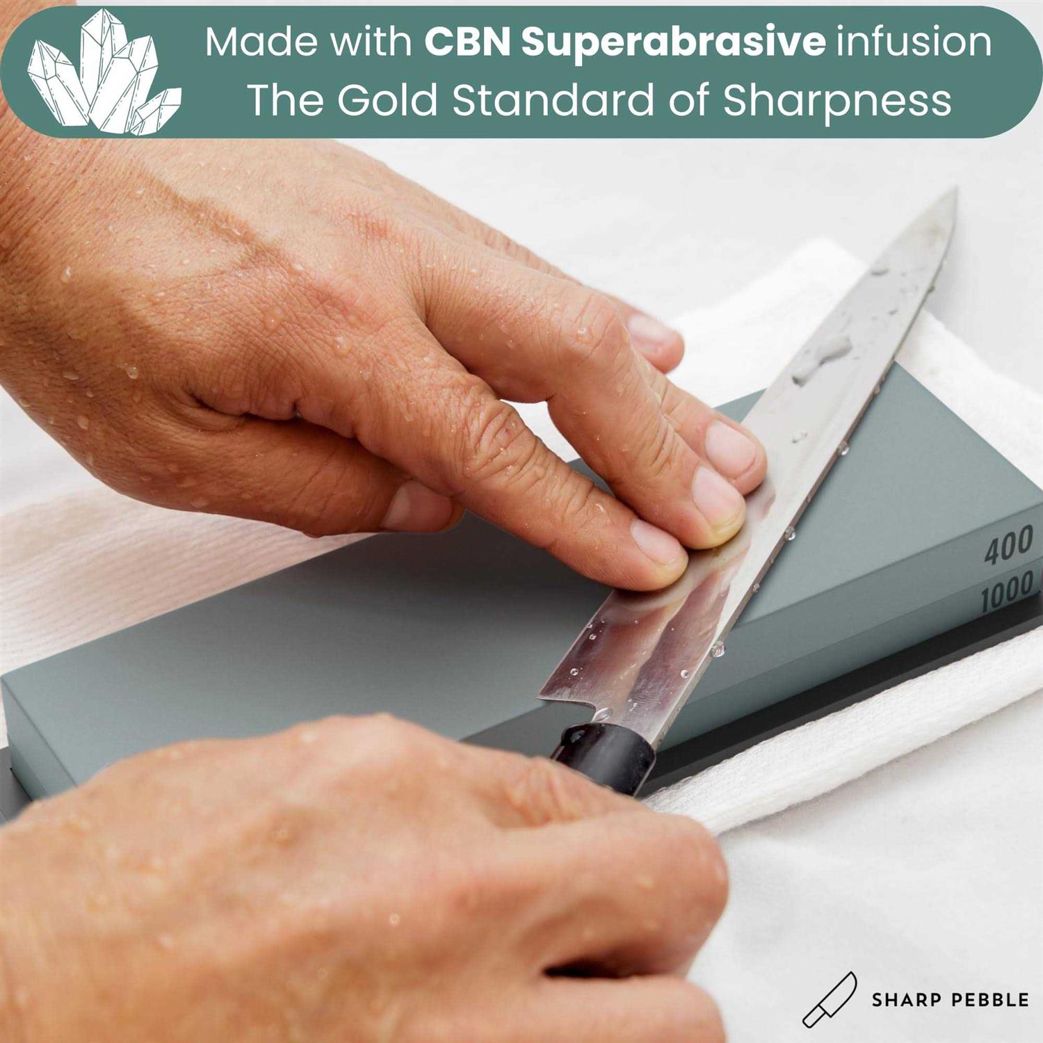 Sharp Pebble Premium Whetstone Knife Sharpening Stone 2 Side Grit 400/1000 Wetstone Kit -Wet Stone Kitchen Knife Sharpener with Flattening Stone