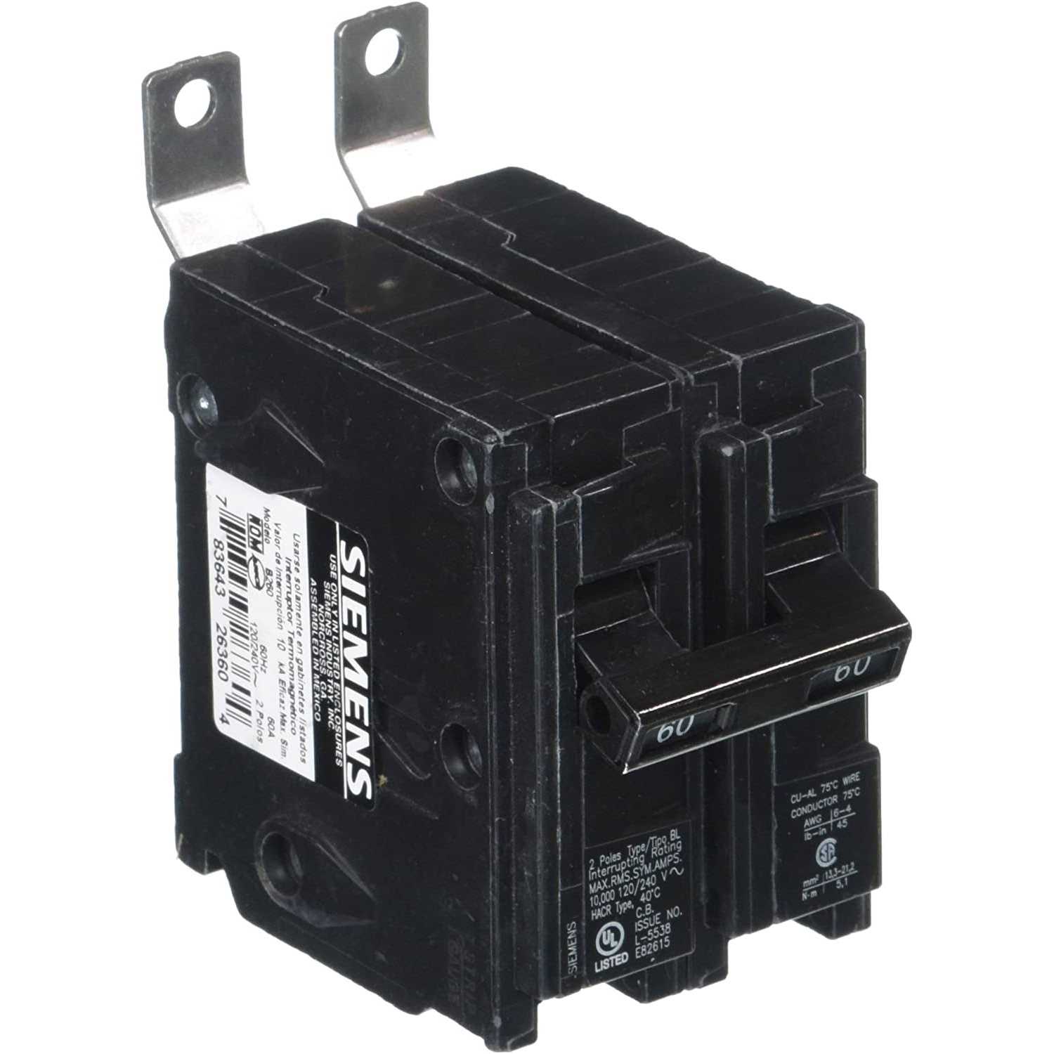 B240 Siemens 2 Pole breakers are specifically designed for industry that require constant demand for full power to equipment. These bolt-on breaker minimize arching which causes damage to the power bus. Bolt-on breaker are more expensive than their counter part the plug-in residential style. Breaker are also switch duty rated and rated for use with air conditioning, heating and lighting.