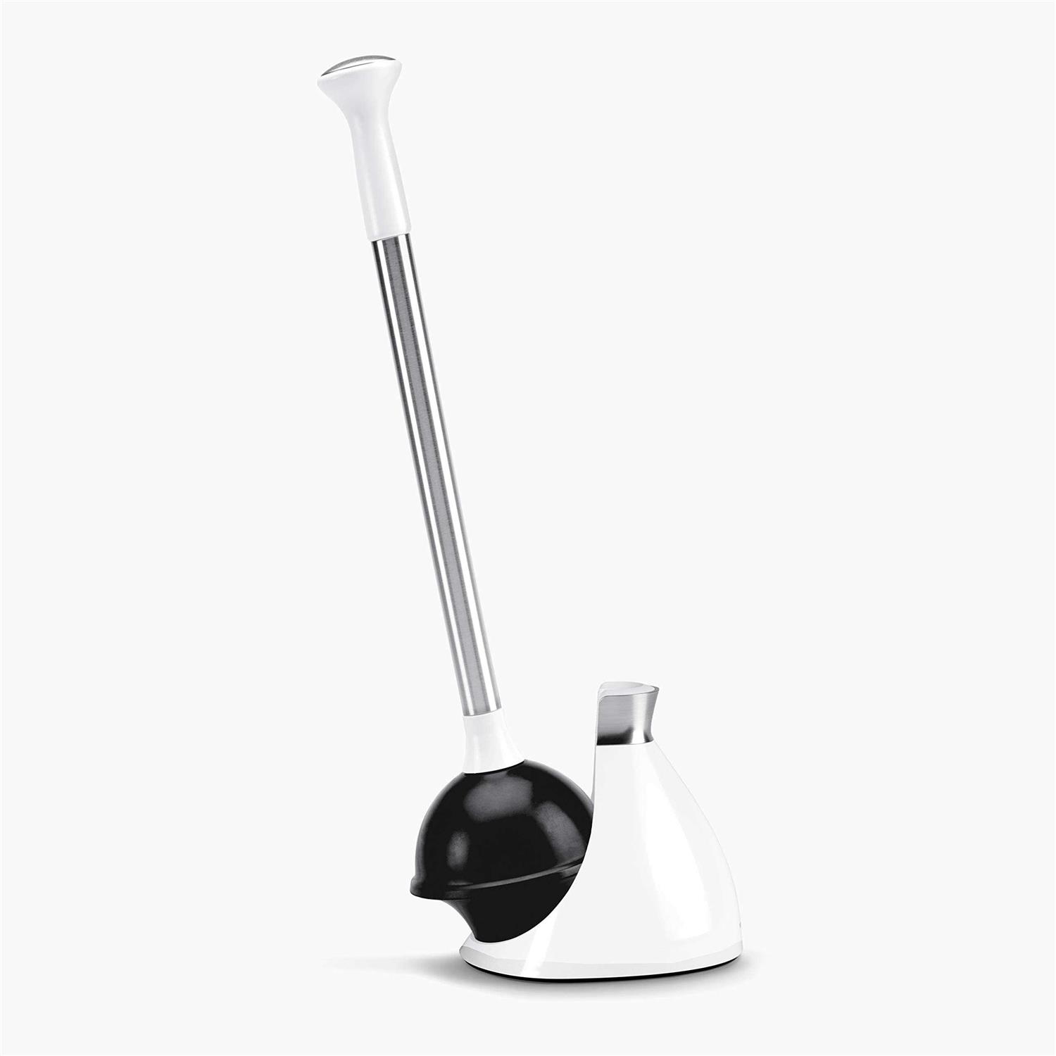 A toilet plunger with style and functionality, minus messy drips Unique, magnetic collar secures the cover to the plunger to prevent drips Carry the collar and plunger together to keep drips from hitting the floor. The dome shaped cover discreetly hides the plunger keeping it out of sight when not in use. A large opening at the back of the cover makes the plunger easy to access. Specially designed with a narrow profile to work more efficiently with modern toilets. Polished, stainless steel rod is design for durability to withstand vigorous use.