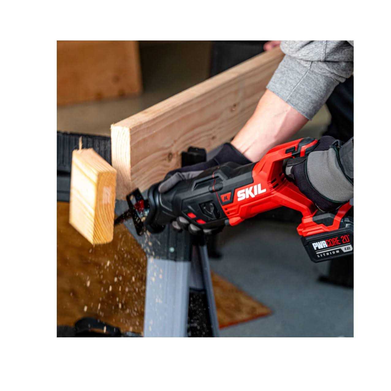 The Power to Cut Through Any Task SKIL PWR CORE 20 technology gives this battery-powered electric saw power and performance. The PWR CORE 20 Brushless 20V Reciprocating Saw efficiently and quickly cuts through wood and tough metal piping. Easily switch between linear and orbital mode, or adjust the depth of cut with the pivoting shoe. Counterweights transfer less vibration, helping you work more comfortably. SKIL’s industry-leading PWR CORE 20 battery technology gives this cordless saw longer run time and battery life, so you can power through your task.