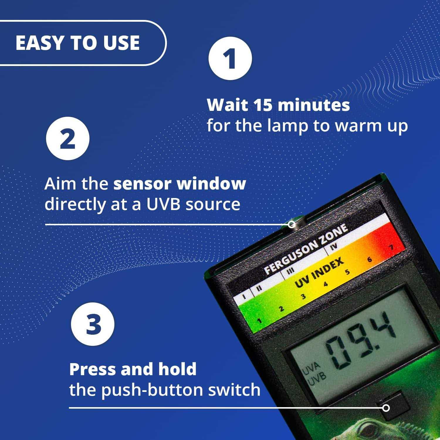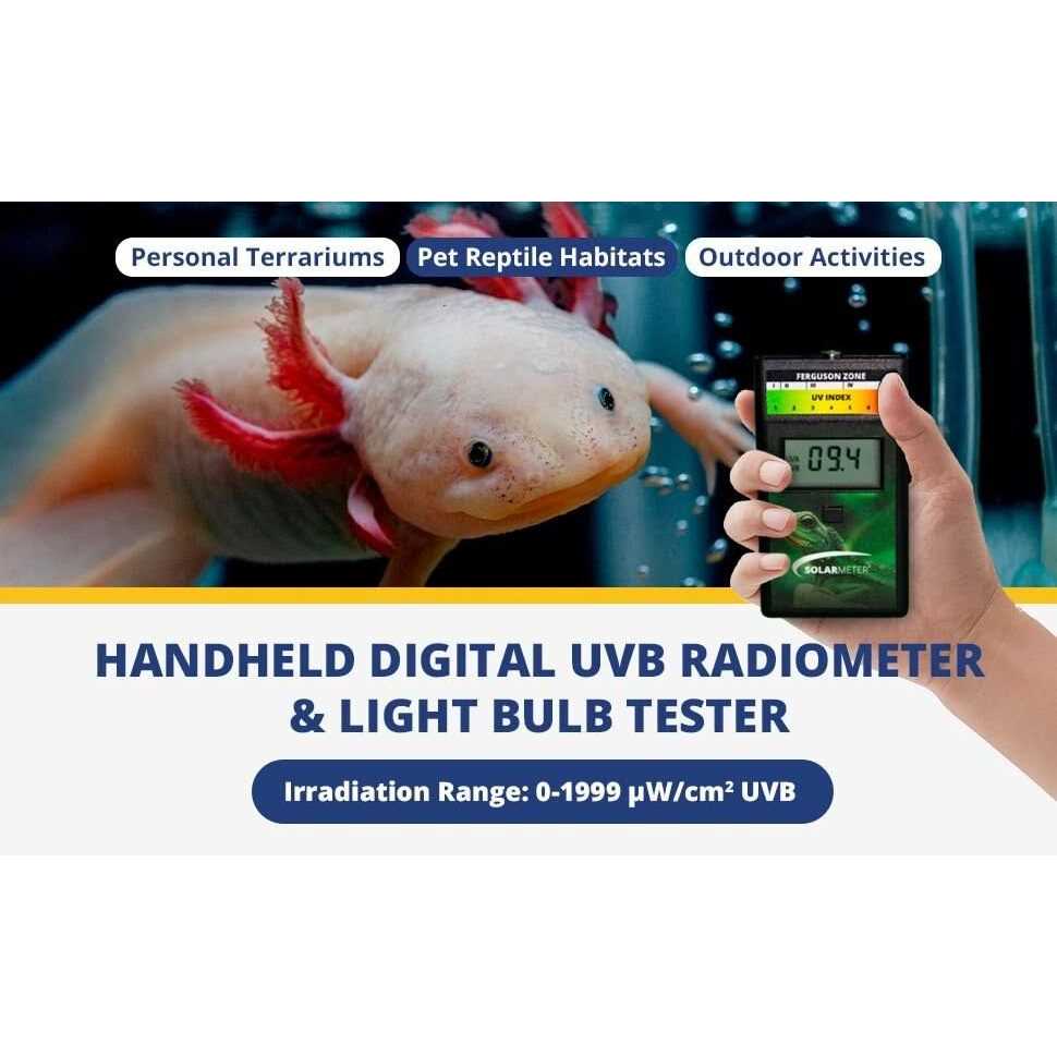 Monitor your cold-blooded pal’s UV needs with Solarmeter Model 6.5R UV Index Meter Reptile Accessory! Made in the USA, this handheld radiometer has a compact, durable design that makes it easy to use for years to come. It can accurately detect erythemal weighted UV from 280-400 nanometers, so you can quickly and easily check that your scaly friend is getting the correct levels of light he needs to stay happy and healthy. With a single-button operation, this device is ideal for routine UV maintenance or for initial reptile habitat setups. This is also great for use with aquatic turtles, terrestrial turtles, tortoises, lizards, and snakes.