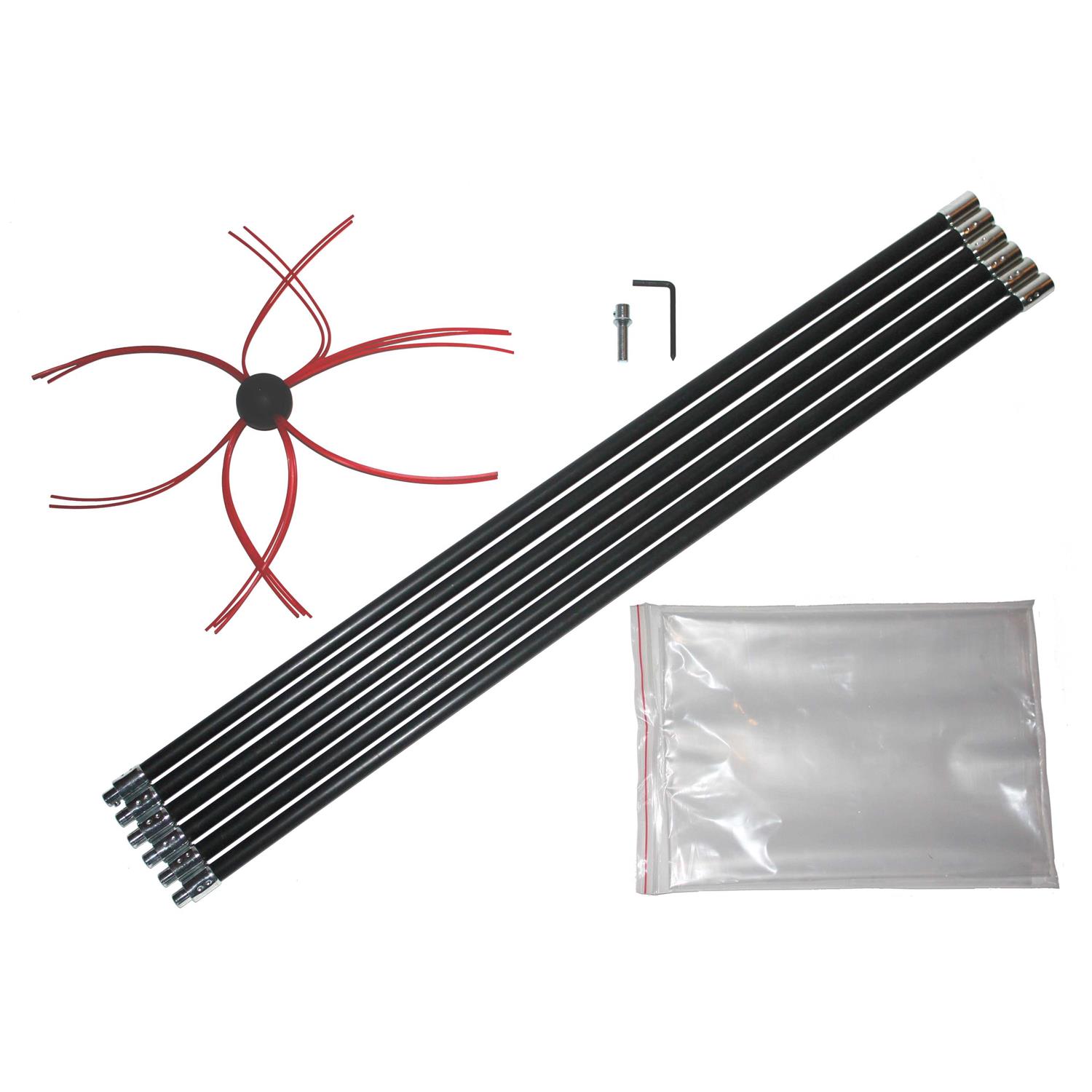 Cleans wood stove and fireplace chimneys from the bottom up utilizing flexible rods with button connect fittings. The spinning chimney whip can be trimmed to fit and removes soot and creosote better than a brush.