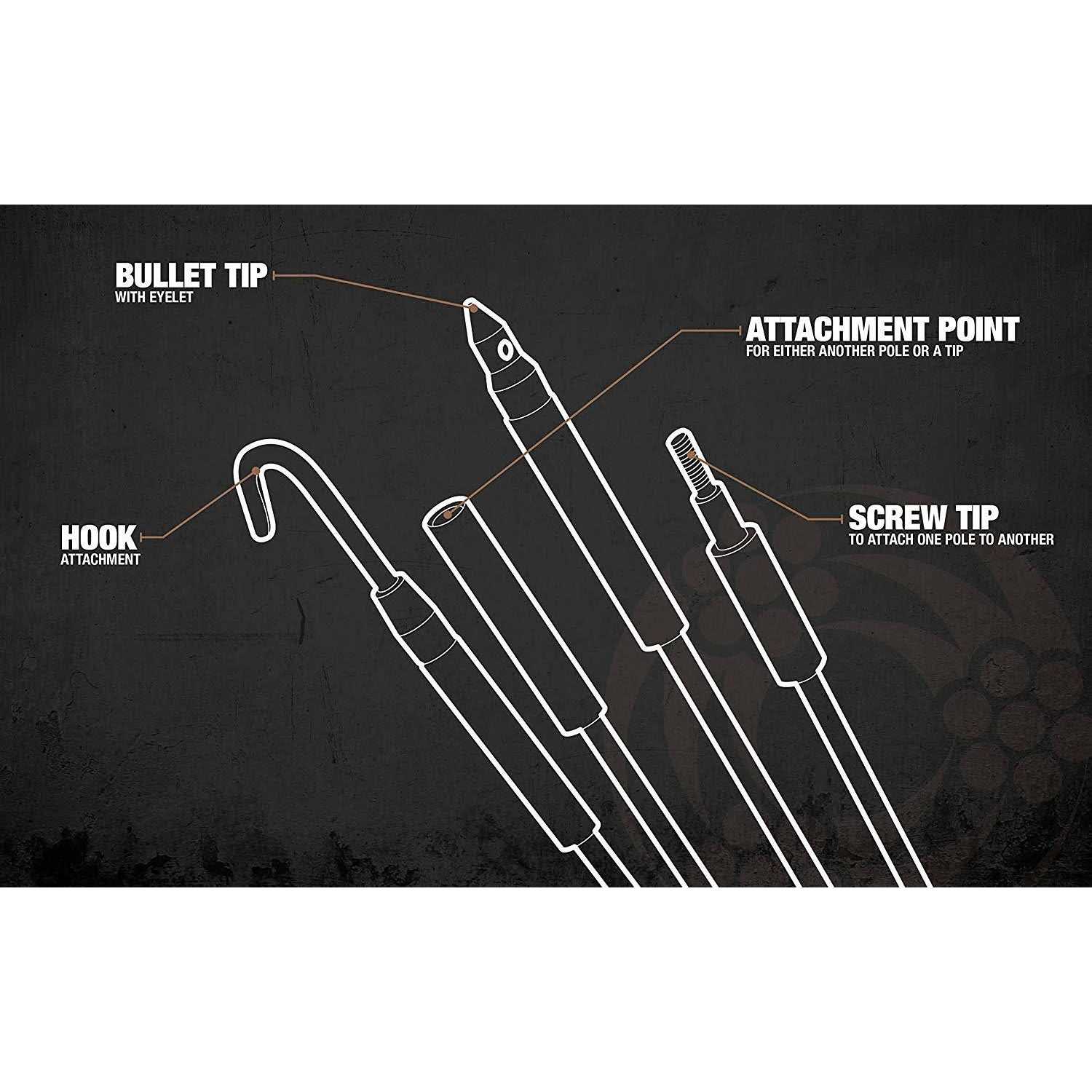 - 3/16″ 8 foot and 1/4″ 12 foot, flexible rods resist splintering and cracking