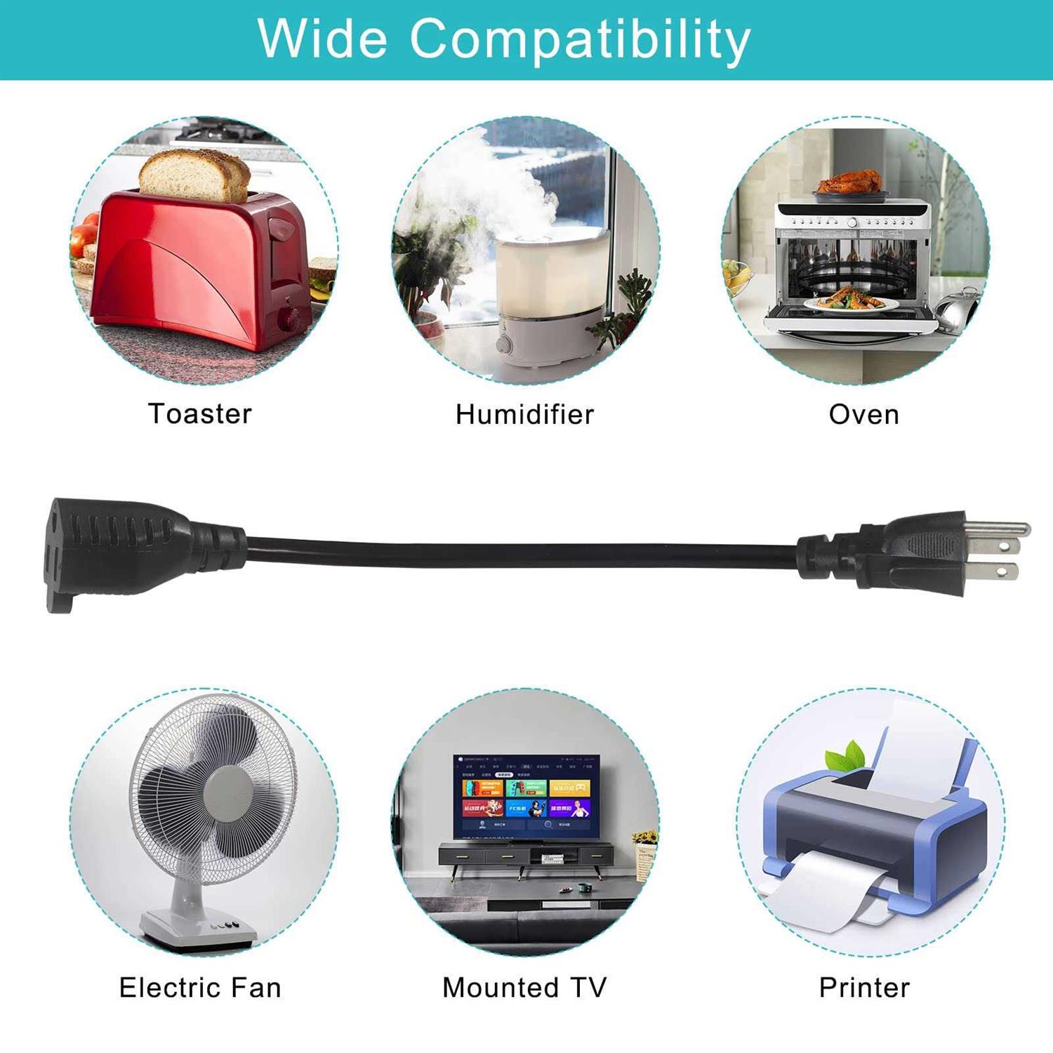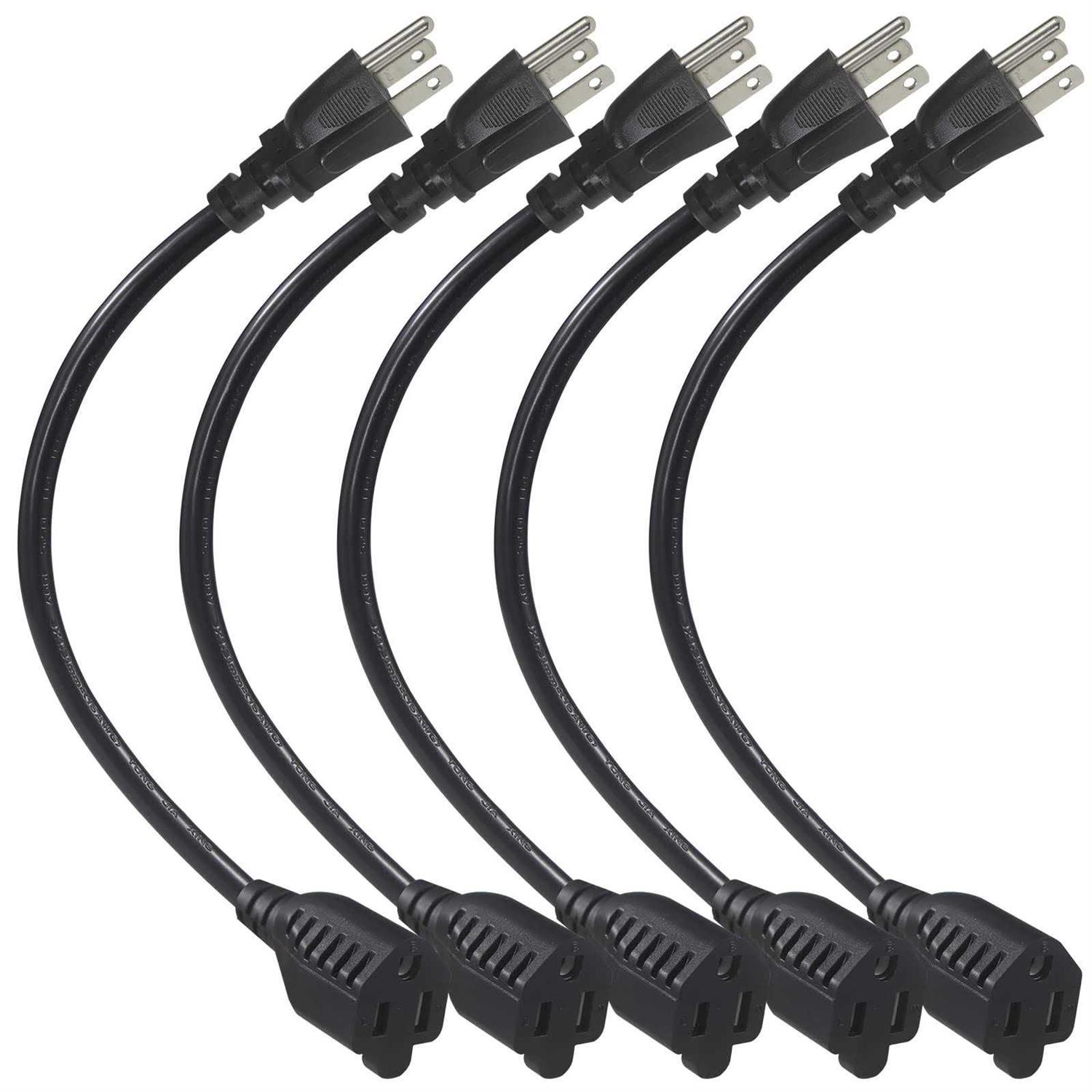 【1FT Short Extension Cord】1Foot AC Power Cord Specifications: Connectors: NEMA 5-15P – NEMA 5-15R. Wire Gauge: 16AWG/3C. Rated to carry: 125V at 13A. Heavy duty power cord extension with a standard NEMA 5-15P grounded power plug and 3 pin female NEMA 5-15R connector. 【Heavy Duty 16AWG Cord】16AWG is thick enough to use on large appliances like refrigerators, and portable heaters too, compared to 18AWG cord, those are durable enough to use everywhere. 【Save Space For Your Power Strip】If you have a lot of electronics that you want to plug into a power strip or UPS box these little extension cords come in very handy! Where the large adapters might block surrounding outlets on your power strip all you have to do is use one of these to extend the outlet so you can power anything you want without having blocked ports. 【Long Enough to Get Just A Little More Reach】These 1 foot AC power extensions are very handy for allowing power bricks to be plugged into multi outlet extension cords without covering up adjacent plugins. the 1 foot design allows for just that bit more reach that would be overkill for an extension cord. As quite useful as a replacement for wall watt transformer plug.