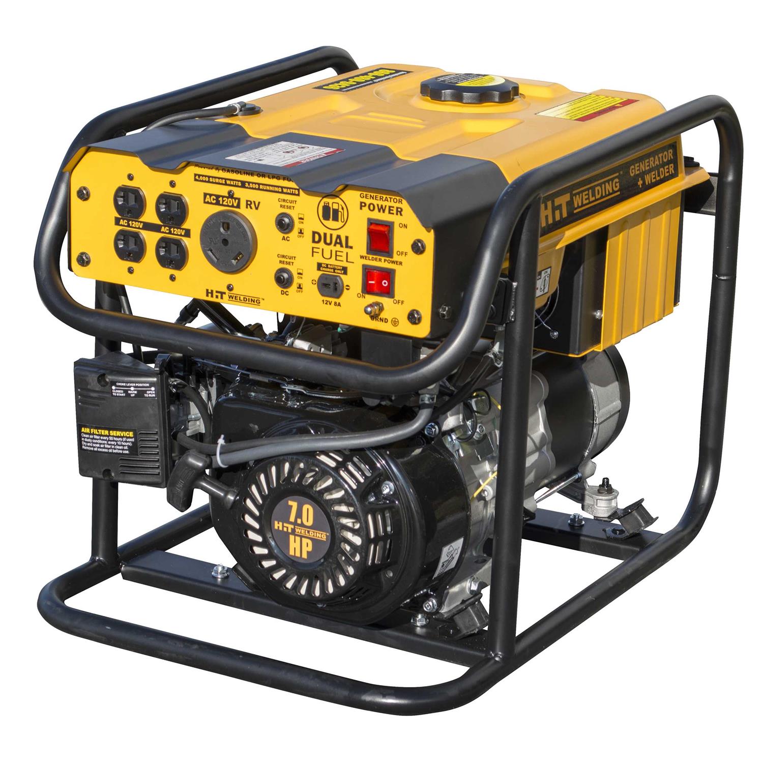 The HIT has everything you need for the job in one package. A 3500 Running Rated Watts generator is combined with a 85 Amp Stick Arc welder to provide flexibility and convenience in a single unit. With 4,000 peak watts and 3,500 rated watts the Dual Fuel Generator is a powerful generator that can handle the needs of most contractors, homeowners and recreational activities. Equipped with four 120 Volt outlets, a single 120 Volt RV outlet, and a 12 Volt DC outlet for battery charging, this generator can handle almost everything you need at the job site. Utilizing either unleaded gasoline or propane gas, so you can use whichever fuel is more easily available or affordable at the moment, providing the long lasting, clean burning advantage of propane gas, plus the familiar and easy to find benefits of unleaded gasoline.Easy to use, lightweight and portable, this Stick Welder is ideal for light duty automotive and industrial welding at home, on the farm, or at the shop. For better welds and consistent output the 85 AMP 120V Stick Welder is inverter powered from a standard 120V outlet, to manage fluctuations in input power for better welding and dependability.