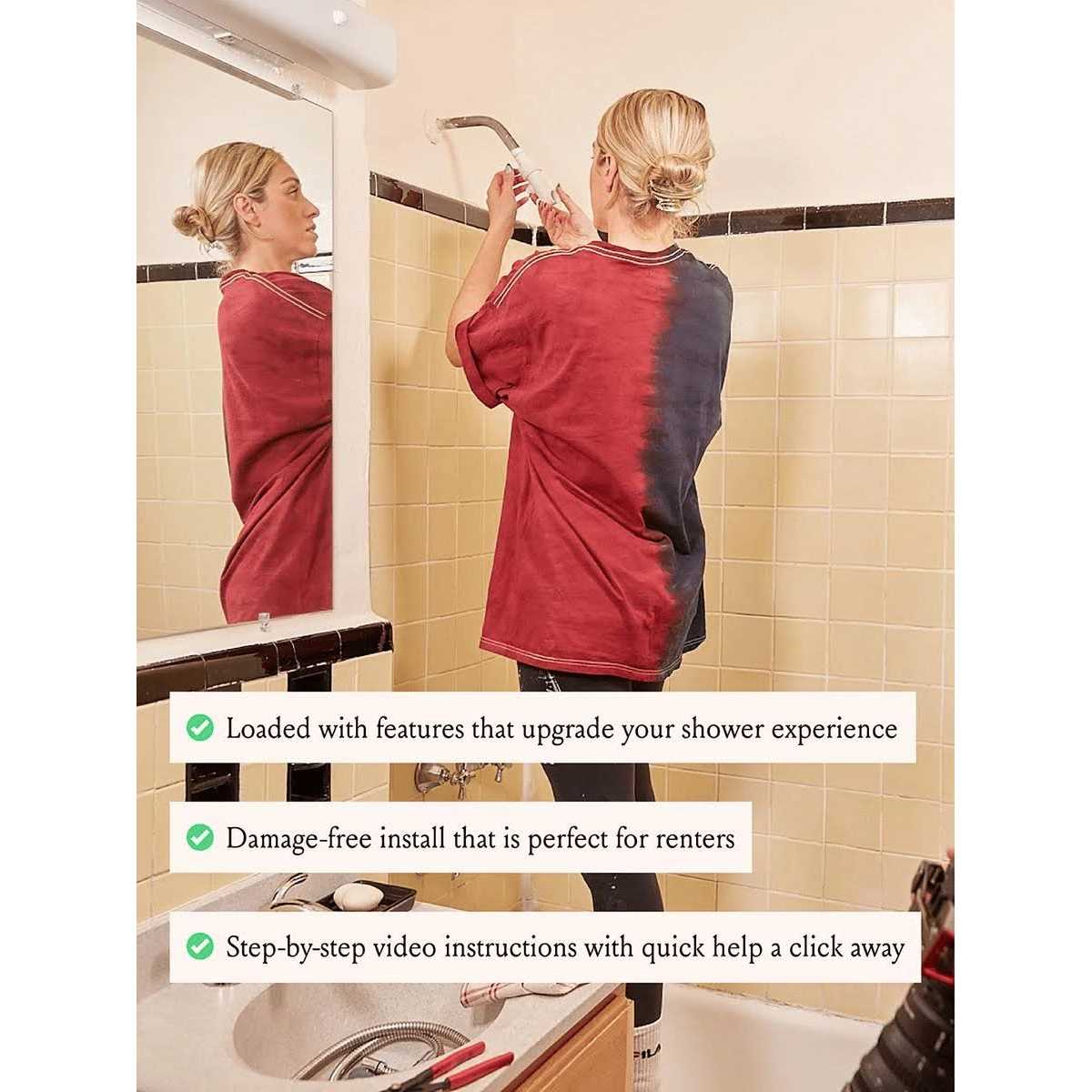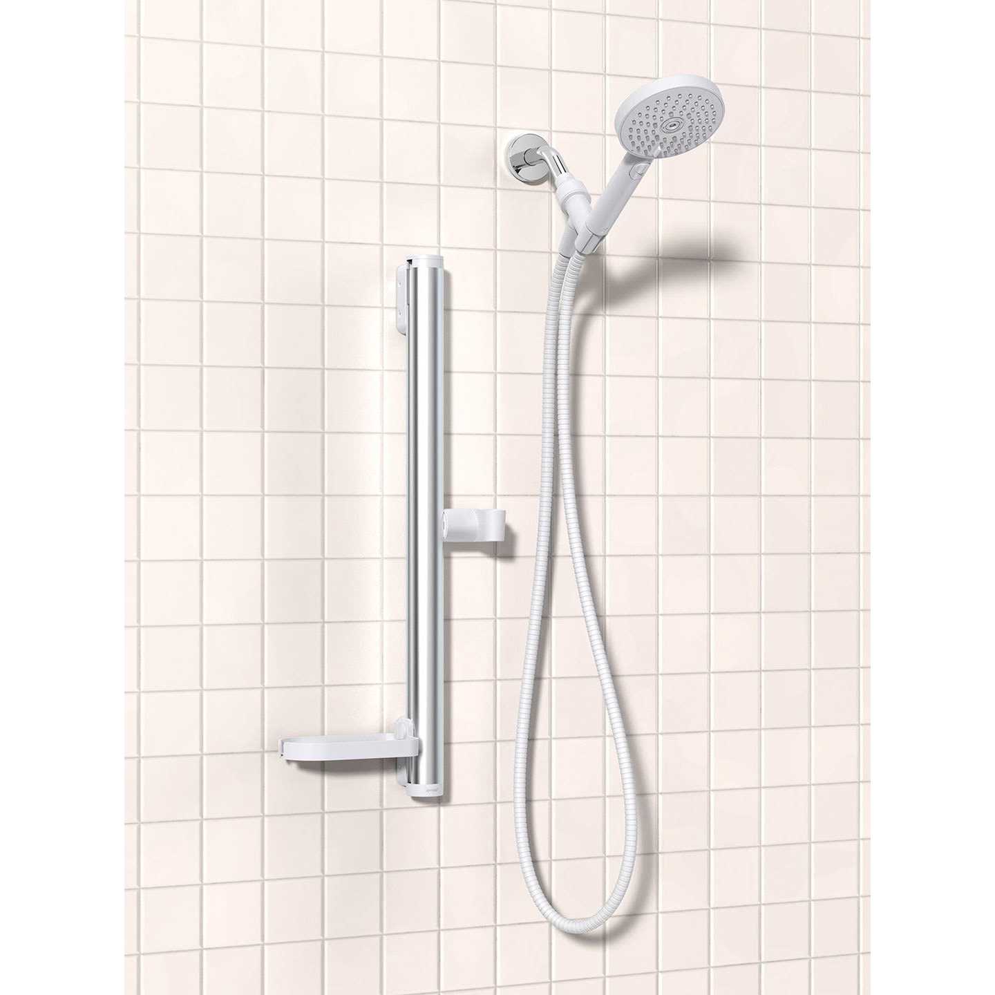 KISS- Keep It Simple, Sproos! You don’t need all those bells and whistles. After all, you don’t live in your shower…or maybe you do. Either way, a hand shower, sliding rail, and spiffy soap dish make this shower simply something special. The skinny on this slim shower: You get a hand shower with three spray functions for three different feels, a pause button to help you save water, and an anti-fingerprint finish that stays looking good. Your hand shower fits right at home in our lovely little bracket. Or, feel free to move the shower to the slide bar and adjust the height for all those hard-to-reach places. The Minimalist is simple to install, too. The set comes with everything you need and easy-to-follow online instructions. No trips to the hardware store needed-unless you’d like a plant to go in your shower or something. Everything installs with our patented glue-mounting technology. The anodized aluminum shower rail installs without any drilling and leaves no trace when you decide to leave!