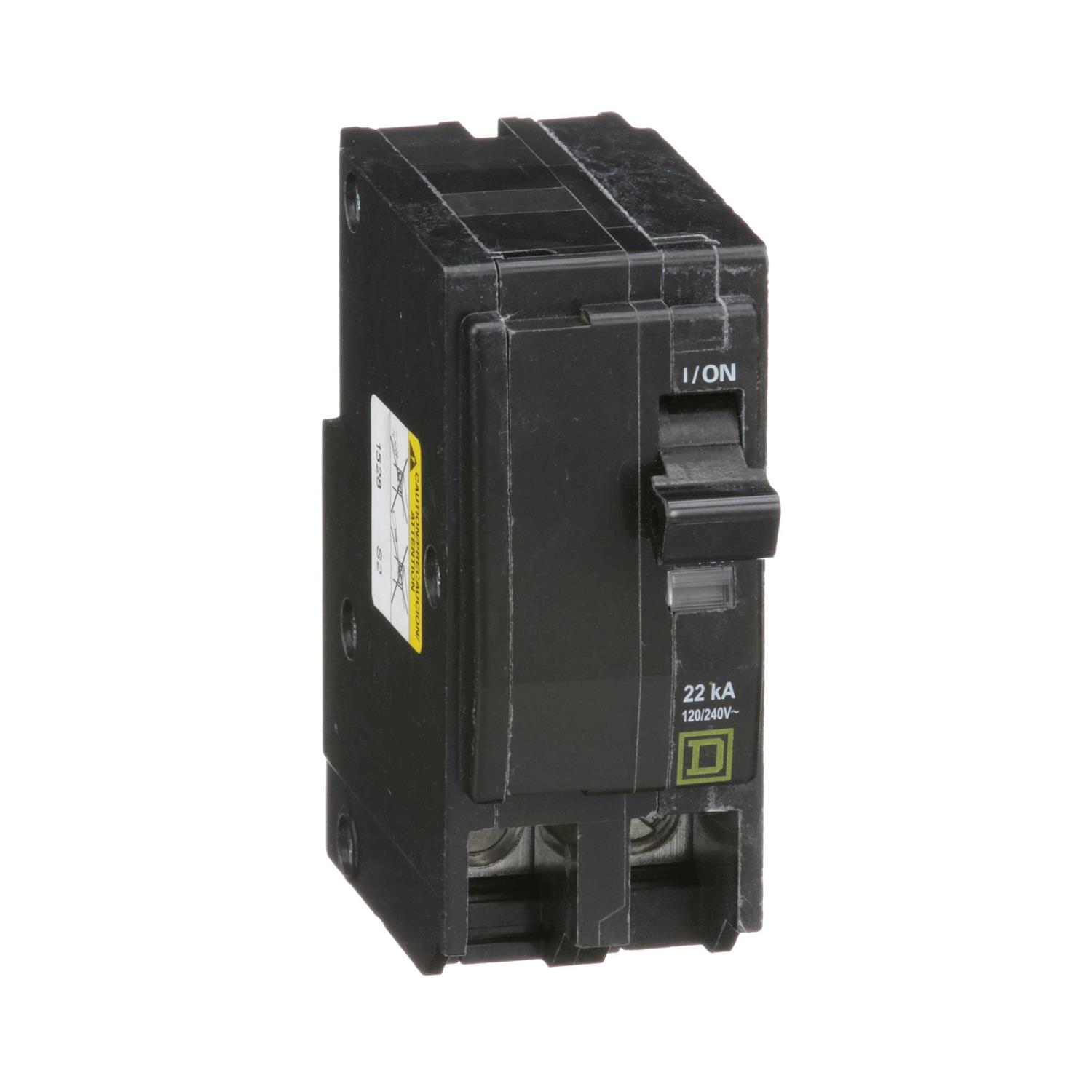 This two-pole thermal magnetic circuit breaker provides overcurrent protection and switching on ac and dc systems. It has an over center, trip-free toggle mechanism with quick-make, quick break action and positive handle indication. It also has VisiTrip trip indication, which provides a visual indication that the circuit breaker has tripped and interrupted the circuit. It provides 22 kA breaking capacity and plug in mounting. It is compatible with Square D QO loadcenters, panels, Meter-Pak, EZM devices that accept 2-pole plug-in breakers. UL File E84967 and is CSA Certified under CSA Master Contract 153555.