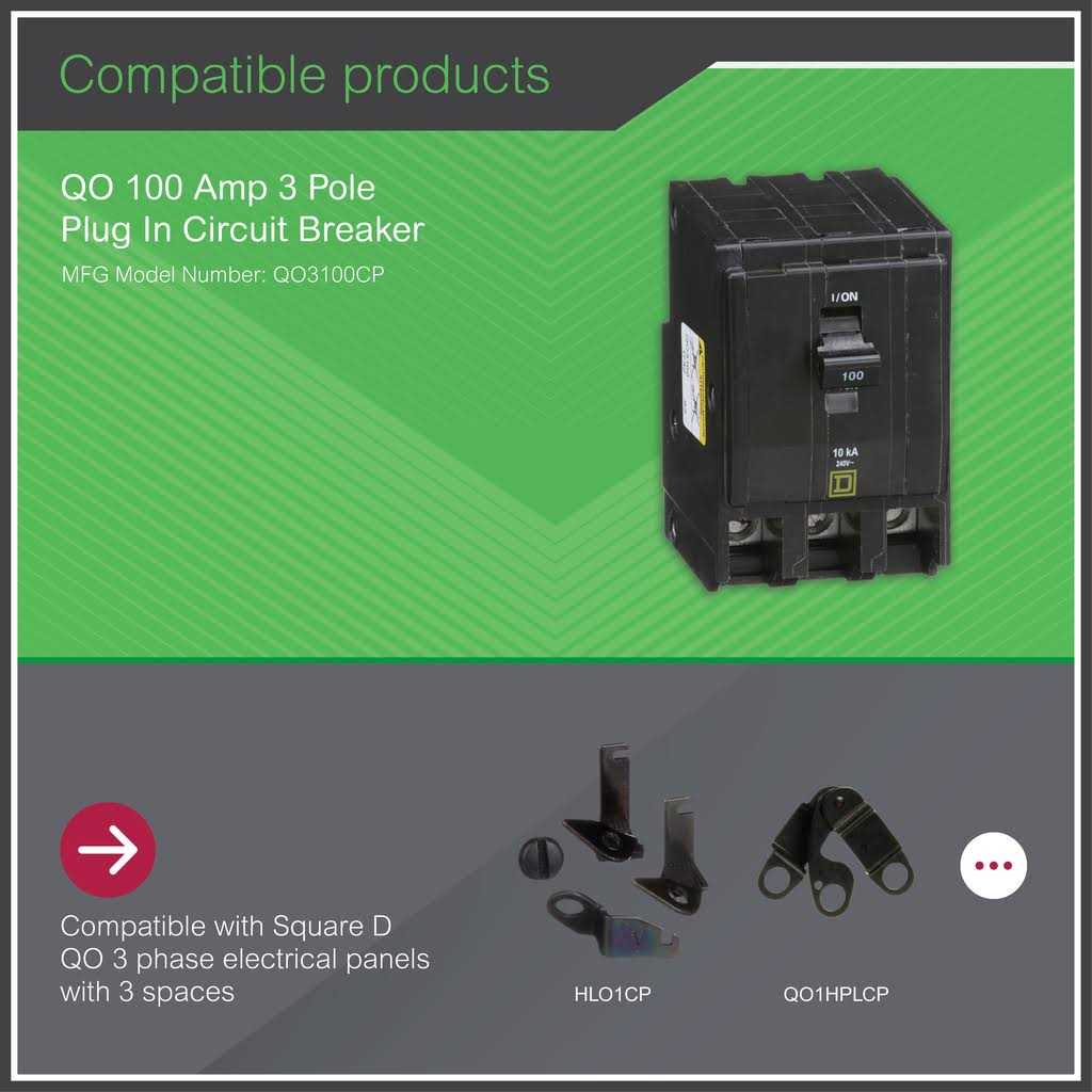 The square d by qo 100 amp three-pole circuit breaker is intended for overload and short-circuit protection of your electrical system. The ansi-certified and ul-listed unit is rated for 240 vac and 10, 000 air. All qo circuit breakers are equipped with the exclusive visi-trip indicator. When a qo visi-trip circuit breaker trips, the handle snaps to a midpoint position between off and on and a highly visible, red indicator easily identifies the tripped breaker. This enables you to easily distinguish which breaker has tripped in a load center that may contain up to 42 different circuit breakers. Qo circuit breakers have features no other manufacturer can offer. They come in many different sizes and can meet the needs of virtually every function in your home or business. These types of quality, industry exclusive products keep the square d brand ahead of the competition and are builders’ and electrical contractors’ first choice in electrical protection.