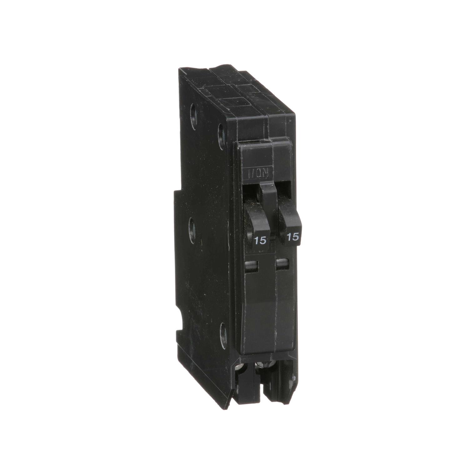 QO and QOB one, two and three pole thermal magnetic circuit breakers provide overcurrent protection and switching on ac and dc systems. These circuit breakers have an over center, trip free toggle mechanism with quick make, quick break action and positive handle indication. They also have VisiTrip trip indication, which provides a visual indication that the circuit breaker has tripped and interrupted the circuit. This QO tandem mini circuit breaker has 2 one pole at 15A for 120/240VAC This unit provides 10kA breaking capacity and plug in mounting. A full line of features and factory installed accessories are also available such as shunt trips, auxiliary switches and alarm switches. QO circuit breakers are UL Listed under UL File E84967 and are CSA Certified under CSA Master Contract 153555 A full line of accessories are available. The box lugs will accept one 14 AWG to 8 AWG copper or 12 AWG to 8 AWG aluminum wire. This circuit breaker has a height of 3.22 inches, a width of 0.75 inch and a depth of 2.91 inches. QO tandem circuit breakers are UL Listed and CSA certified.