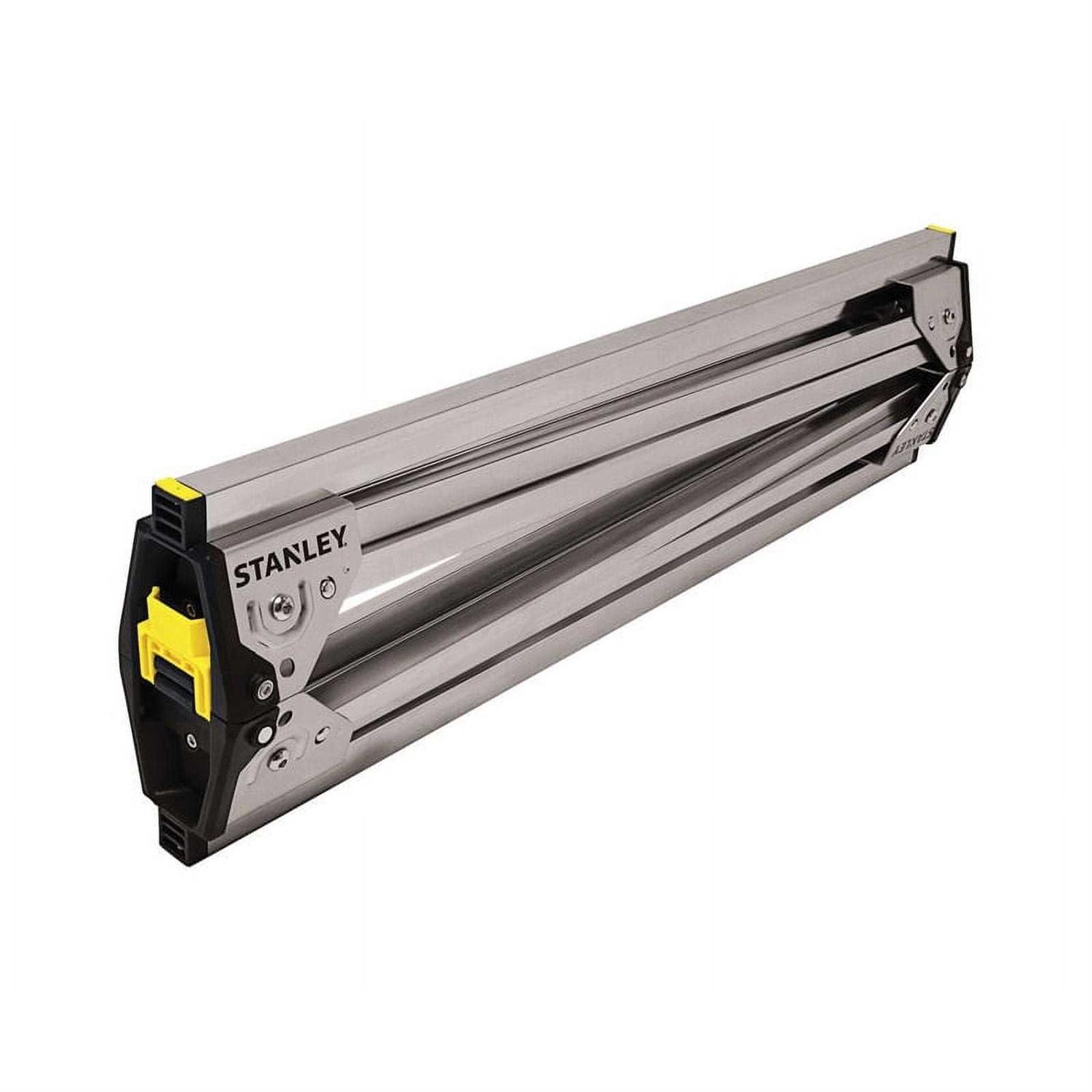 The Stanley Essential Metal Sawhorse has a sturdy, stable structure that can hold up to 750 lbs. (when using a pair). Its upper metal bar enables direct clamping for a wide range of jobs. Anti-slip rubber pads create friction on the surface while cutting. Folding legs enable quick setup and breakdown. Side latches hold 2 single units together for easy carrying and compact storage. Upper metal bar enables various clamping applications Anti-slip rubber pads create friction on the surface while cutting Stable, metal structure supports up to 750 lbs. (when using a pair) Folding legs enable quick setup and breakdown Side latches hold 2 single units together for easy carrying and compact storage 29 in. L Complete all your hardest work easily by selecting this Stanley Folding Metal Sawhorse. Anti-slip rubber pads create friction on the surface while cutting.