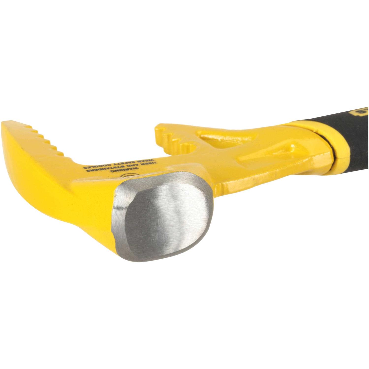 Fits easily in hammer loop and at 2.5 Lbs. Can be carried around on job site comfortably. Serrated jaw-sized for gripping 2ft ” lumber. One piece steel forged bar for durability. Comfortable soft touch grip. Beveled chisel end for prying. Tapered nail slot for pulling nails. 22 Oz. Head weight comparable to framing hammer.
